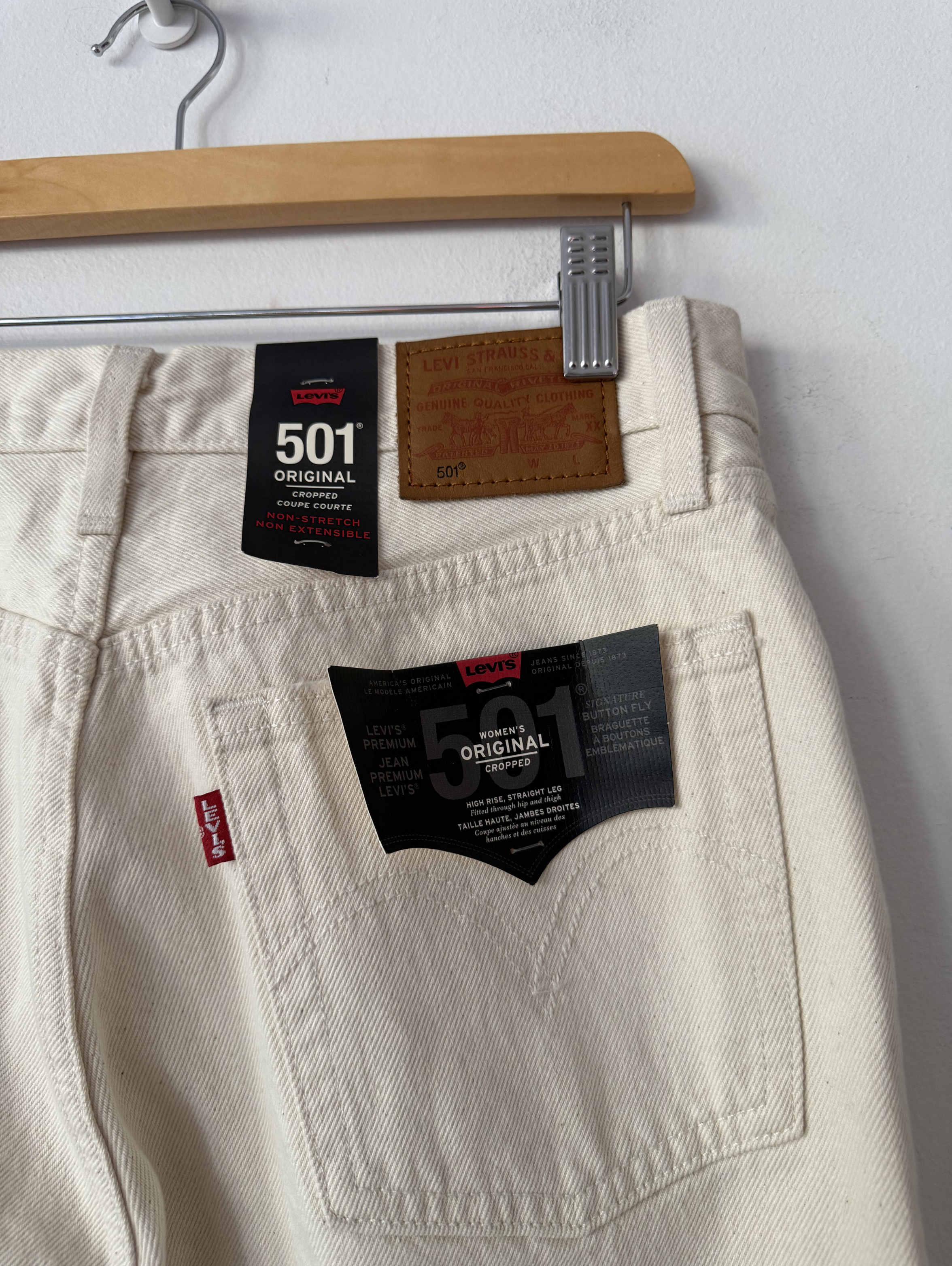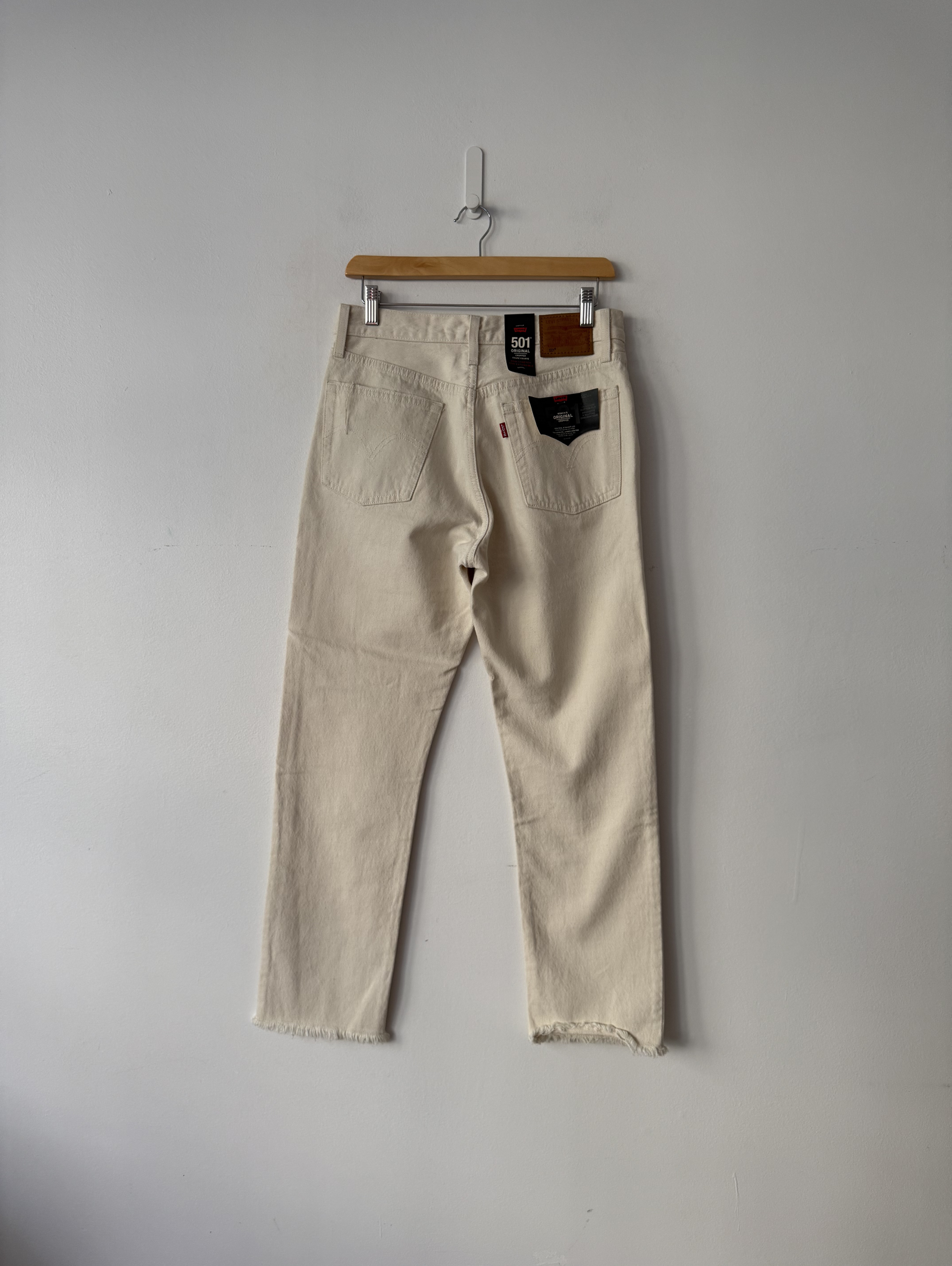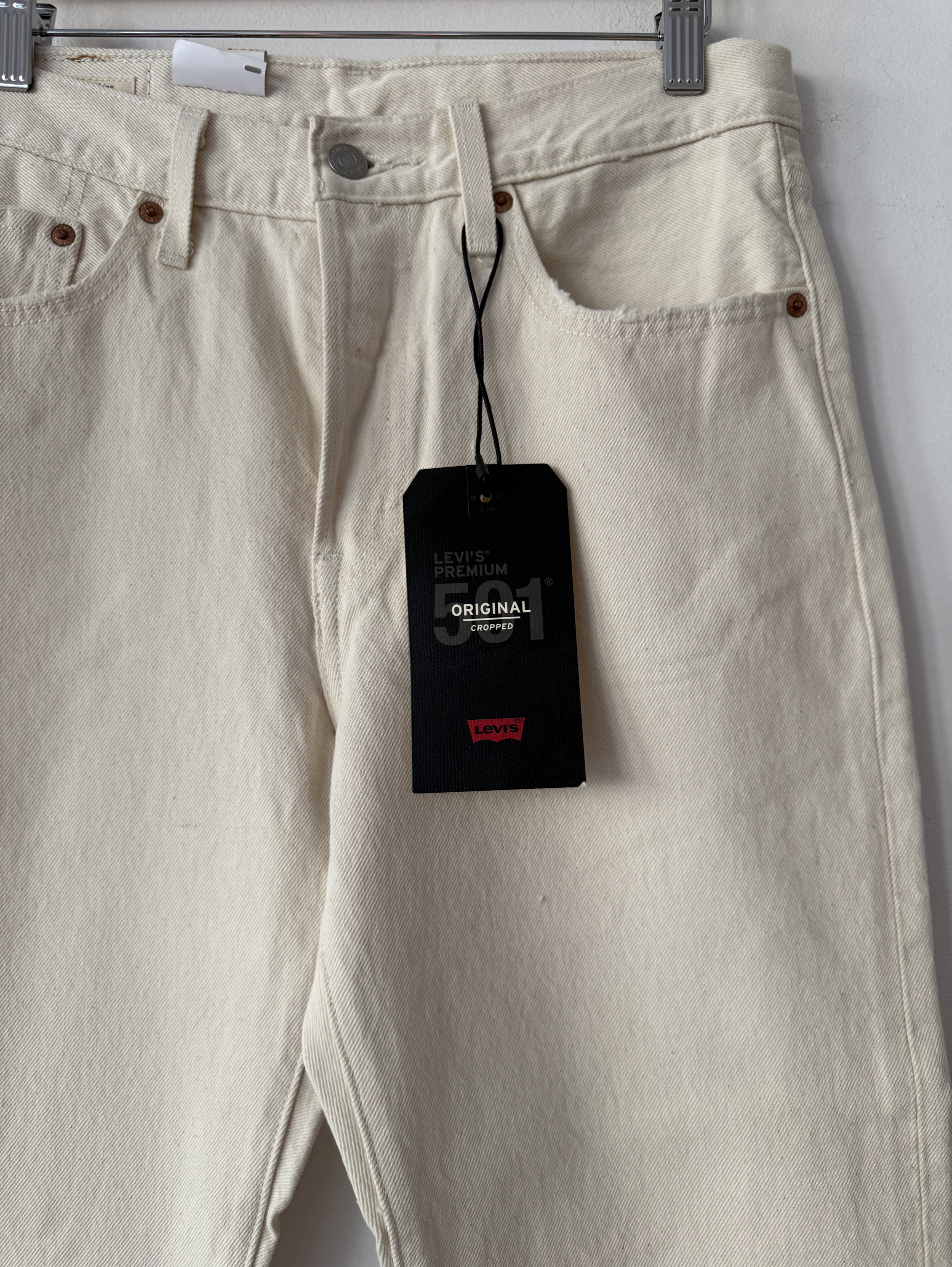 Cream original cropped denim jeans with a straight-cut, cropped silhouette.