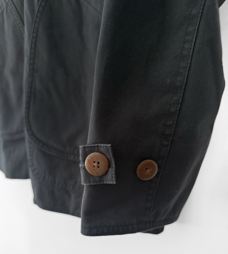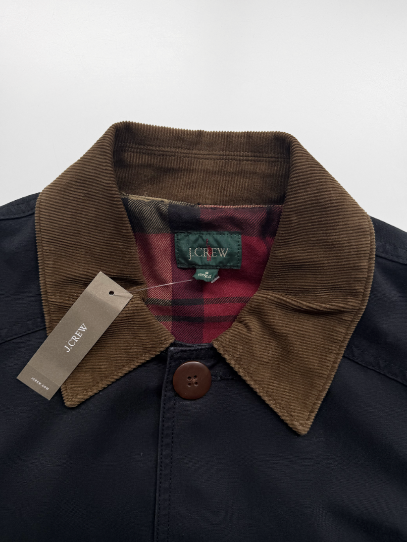 Navy blue barn jacket in perfect, never worn condition with contrasting collar. Fully lined. Composition: 100% cotton. Machine wash.