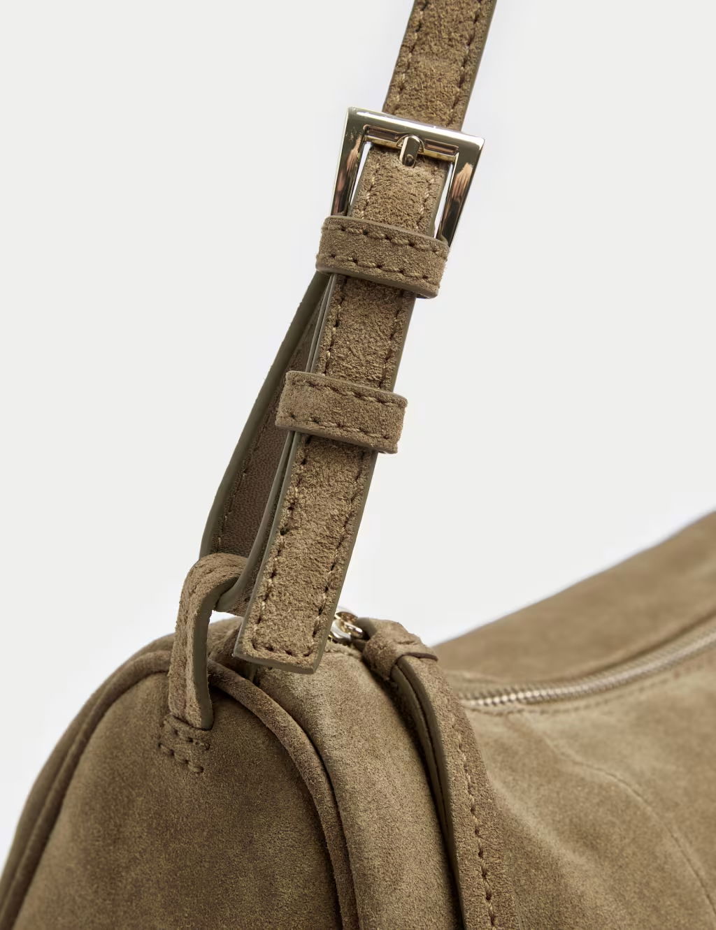 This suede shoulder bag is a versatile accessory that can be worn with smart or casual looks. It’s designed in a roomy regular shape, with a secure zip fastening and a detachable adjustable strap. A zipped pocket inside keeps your essentials organised.