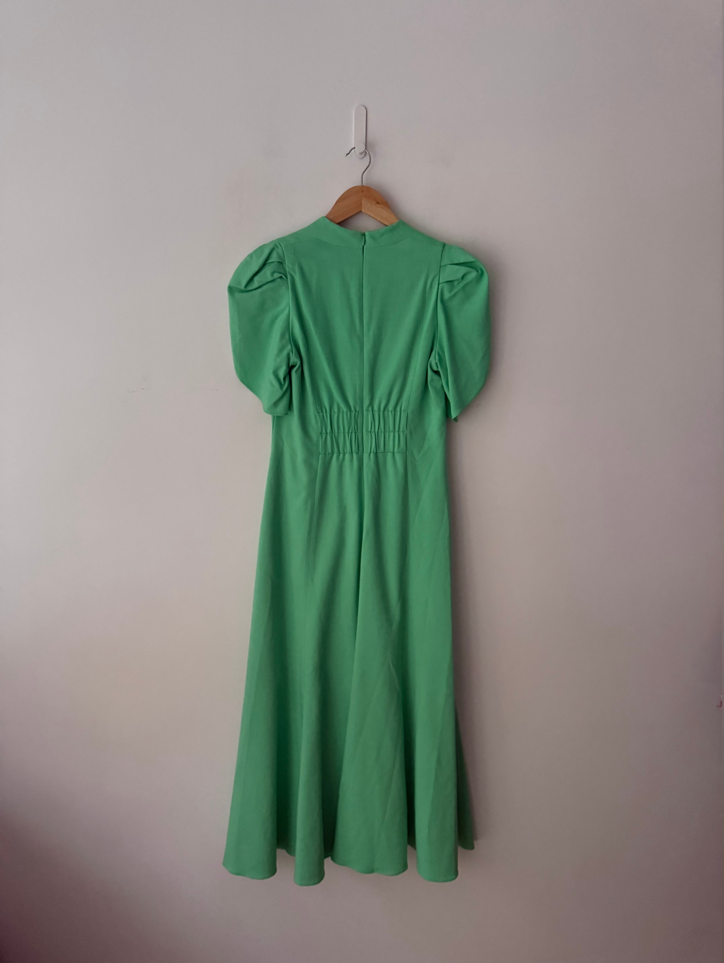 Textured, pleat-front ruched midi dress.