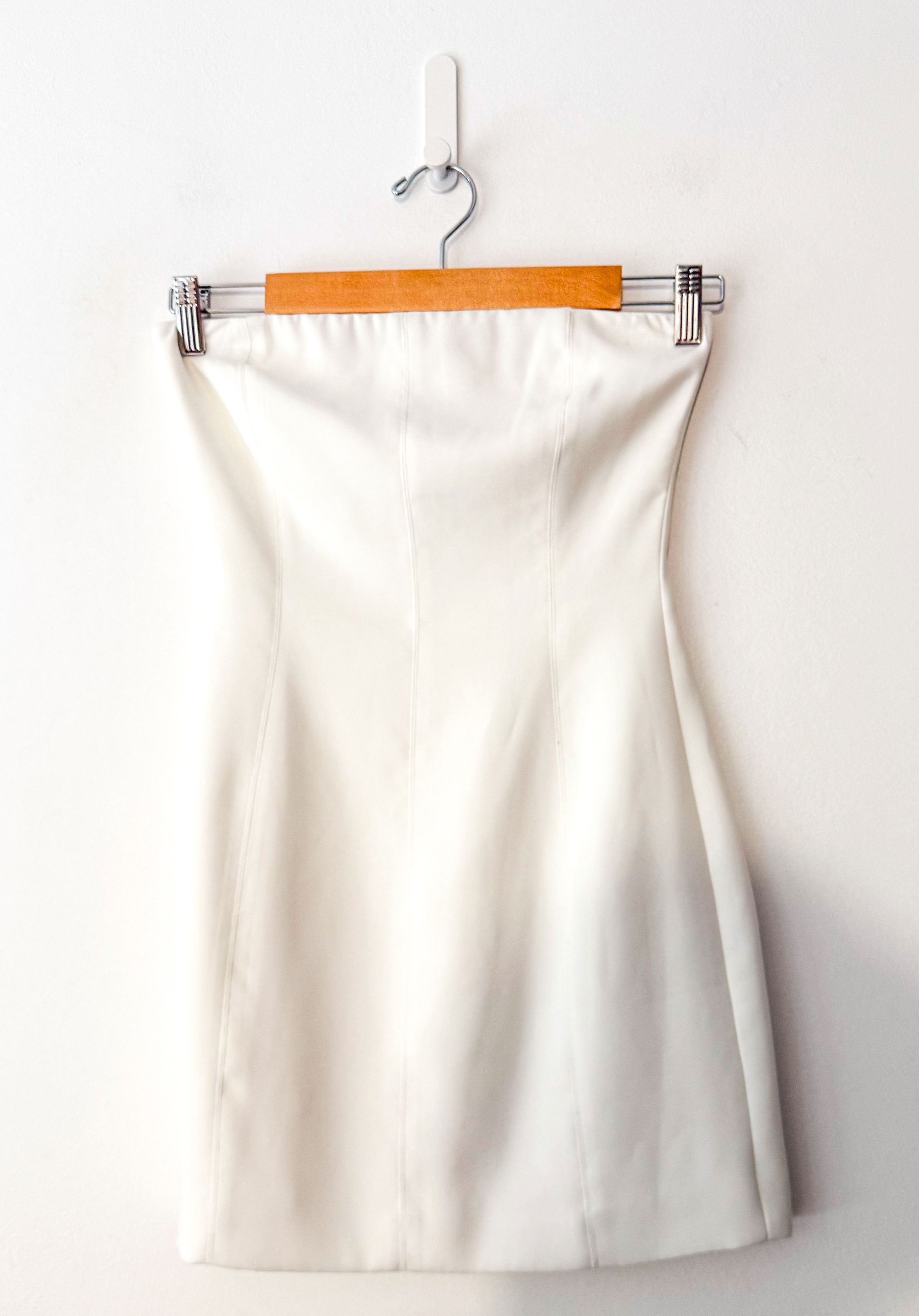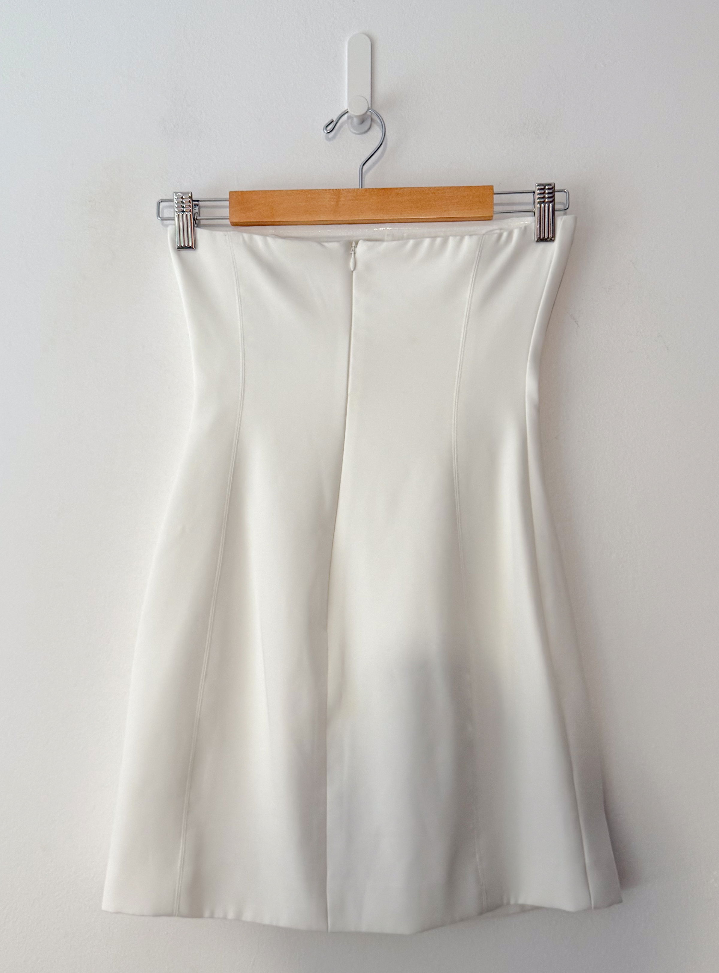 Strapless, fully lined, zip back fastening mini dress. Dry Clean Only.
