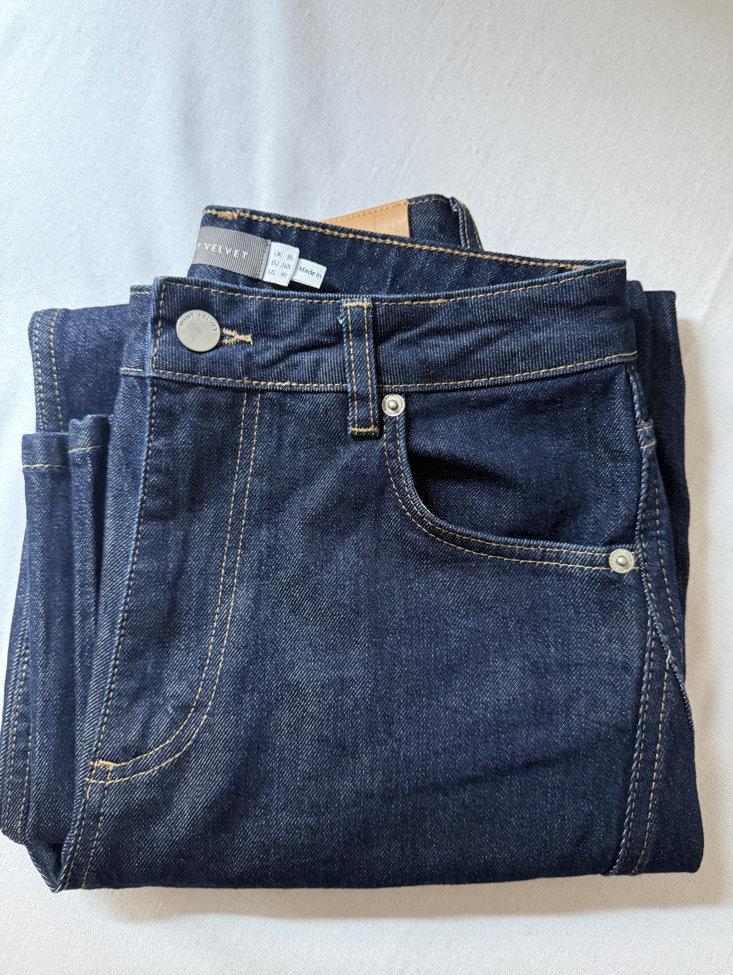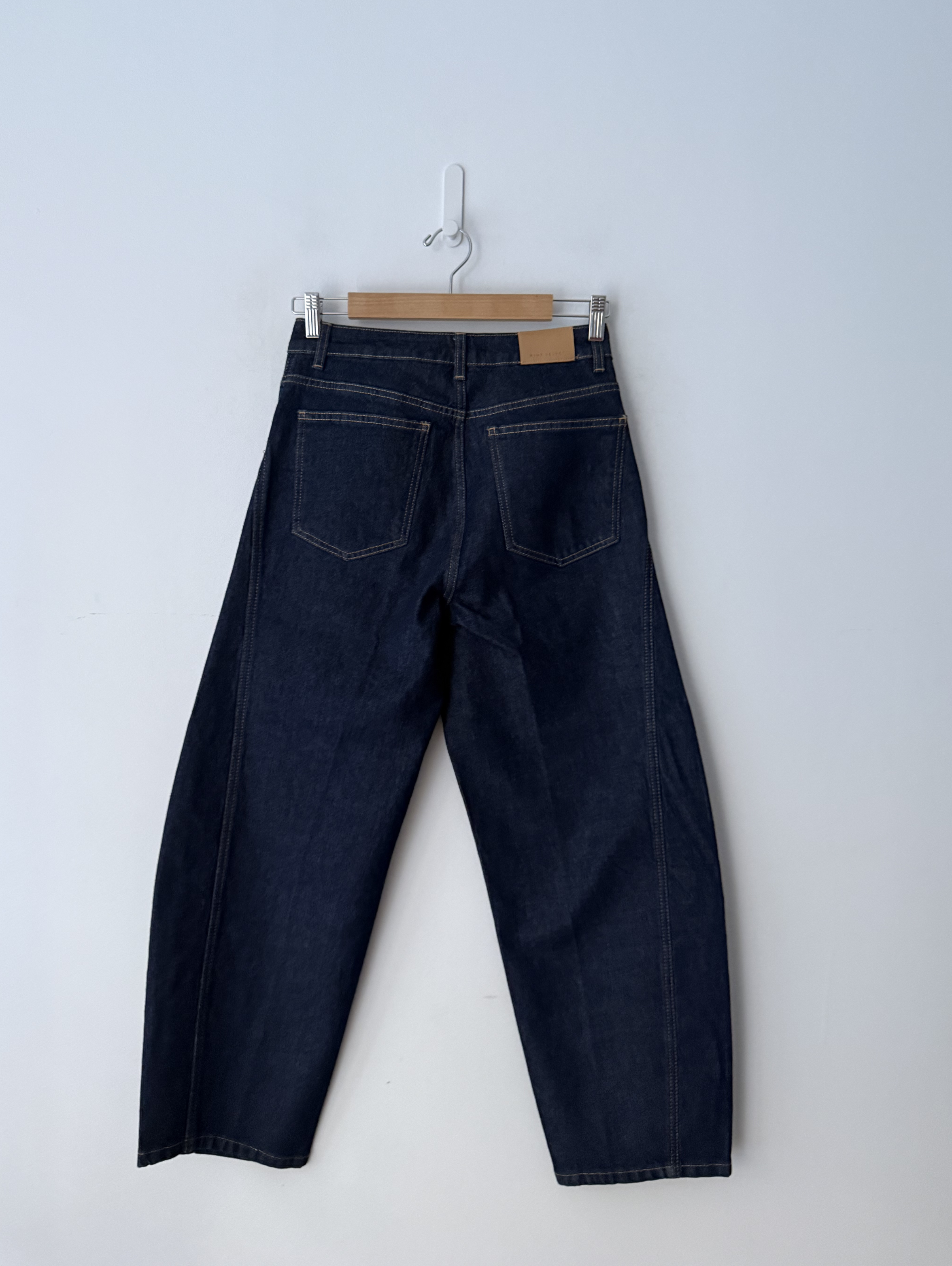 Comfort stretch. High rise. Barrel shape. Ankle grazing hems jeans.