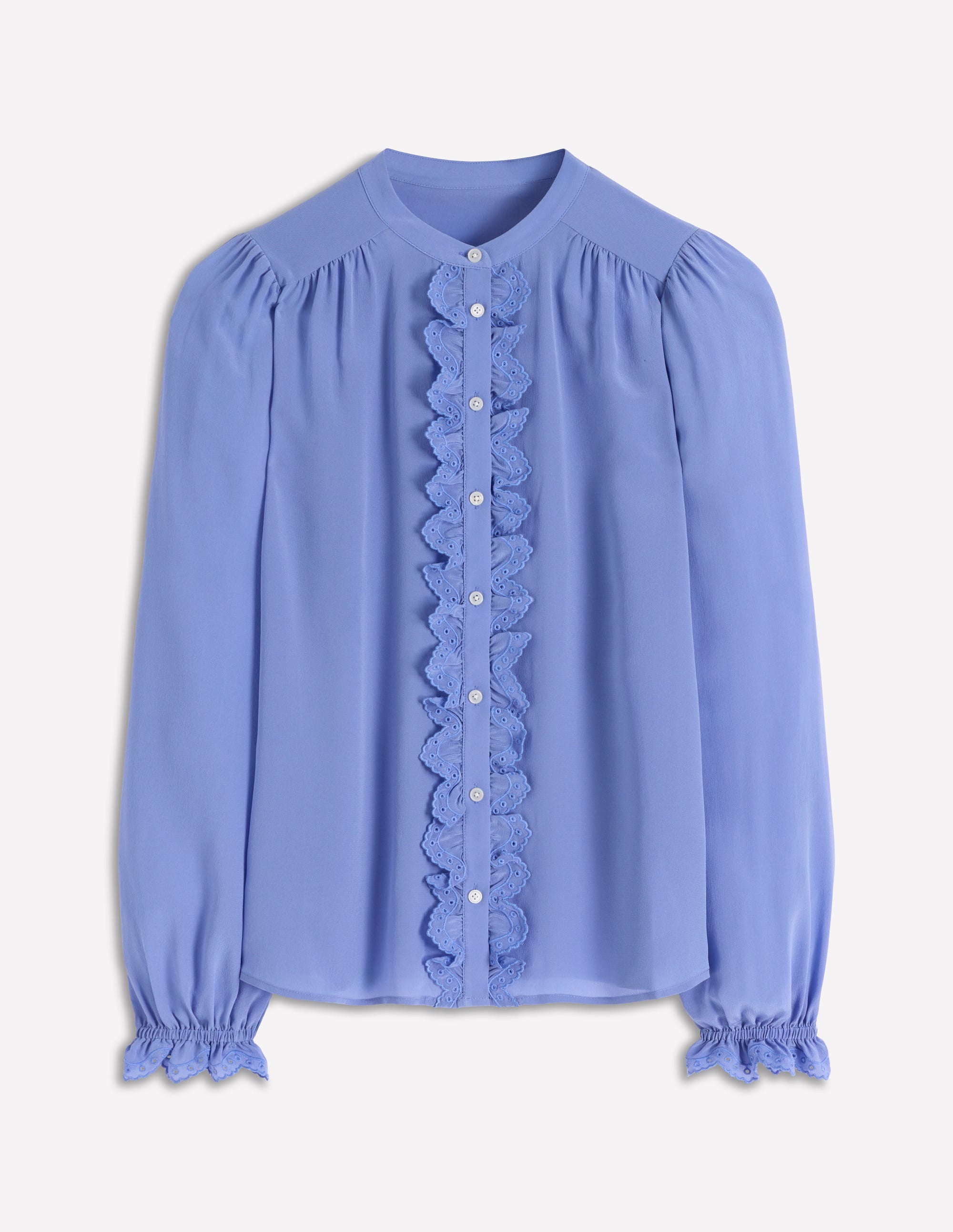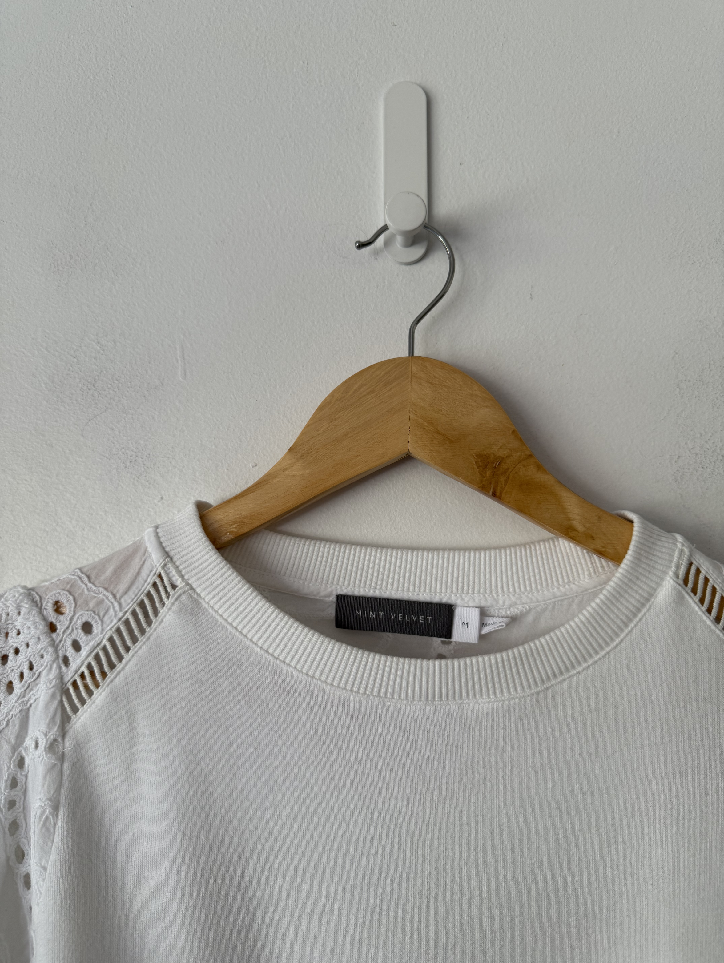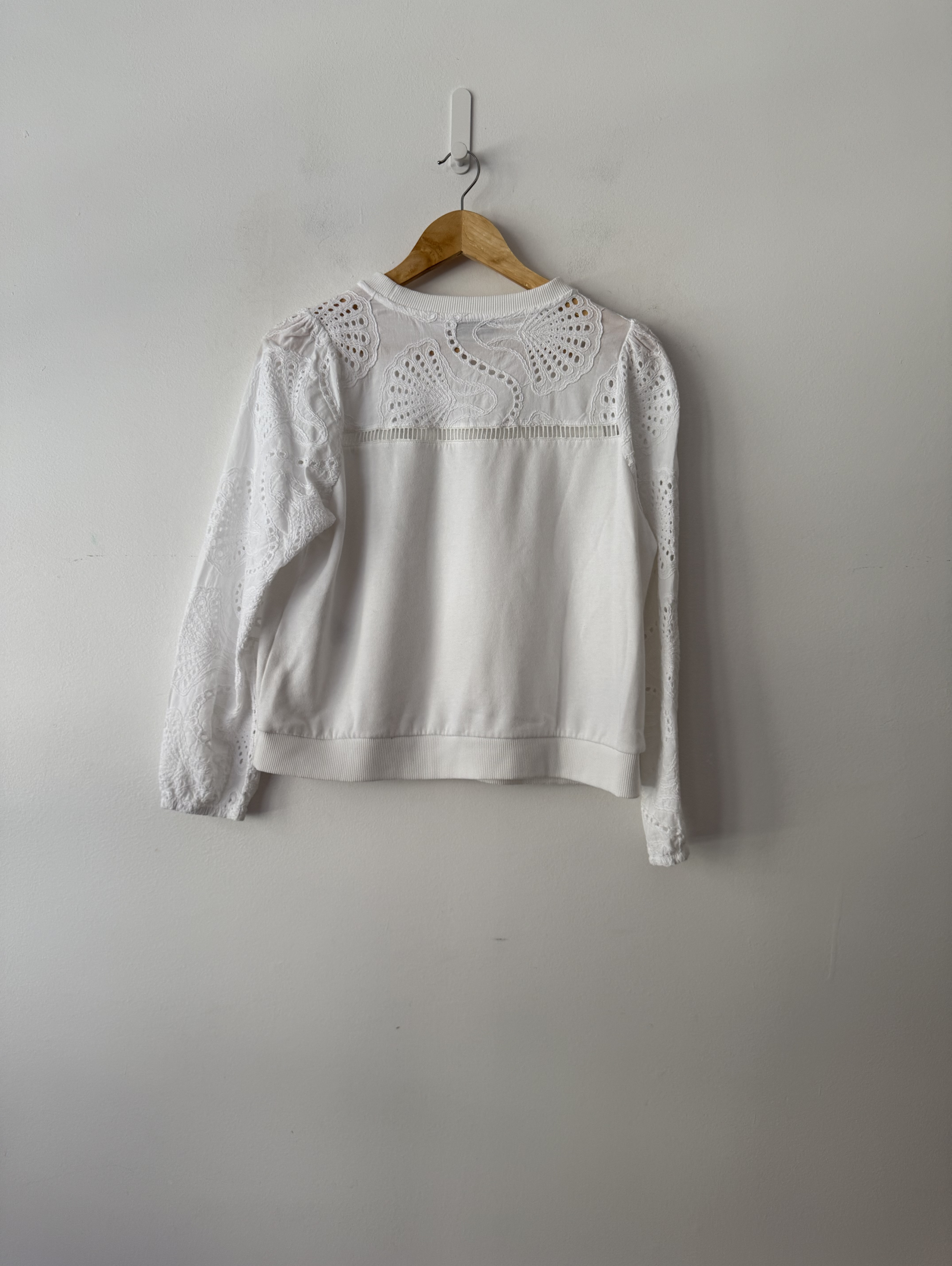 A cosy jumper featuring a crew neckline and long crochet sleeves.