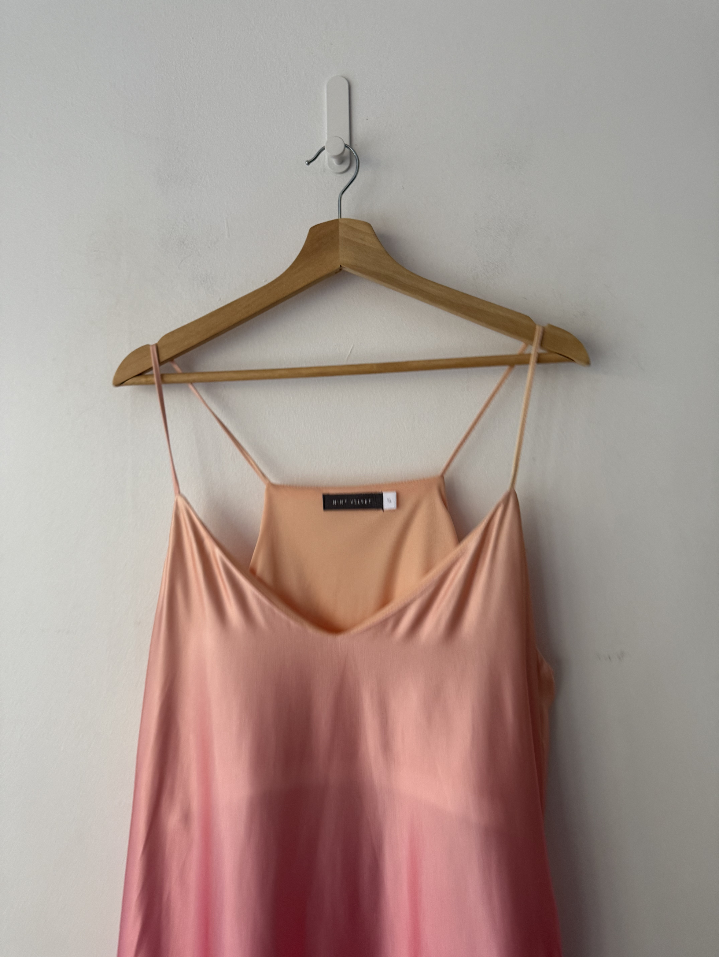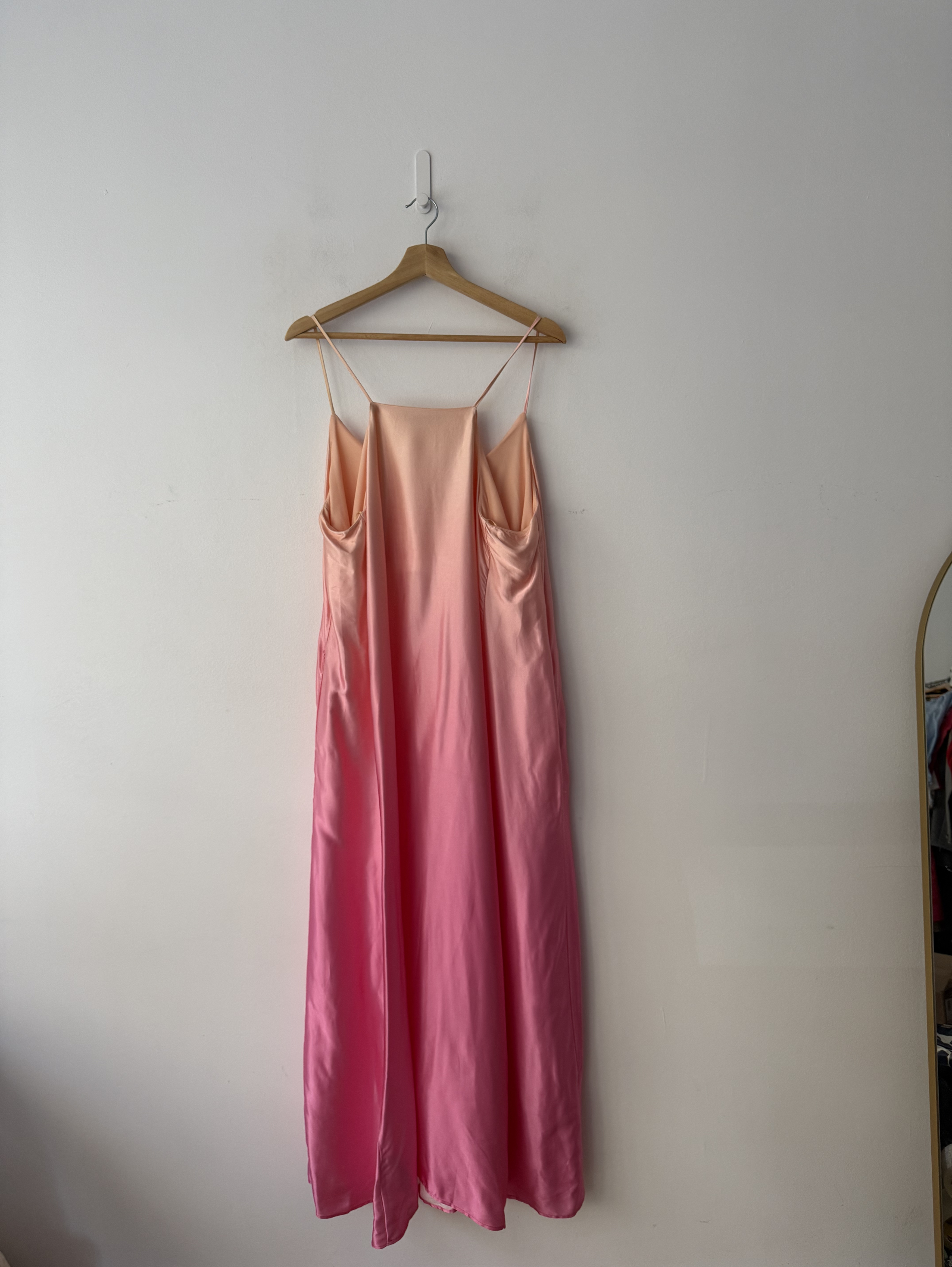 Two Tone Ombre Pink Satin Maxi Dress with adjustable straps.