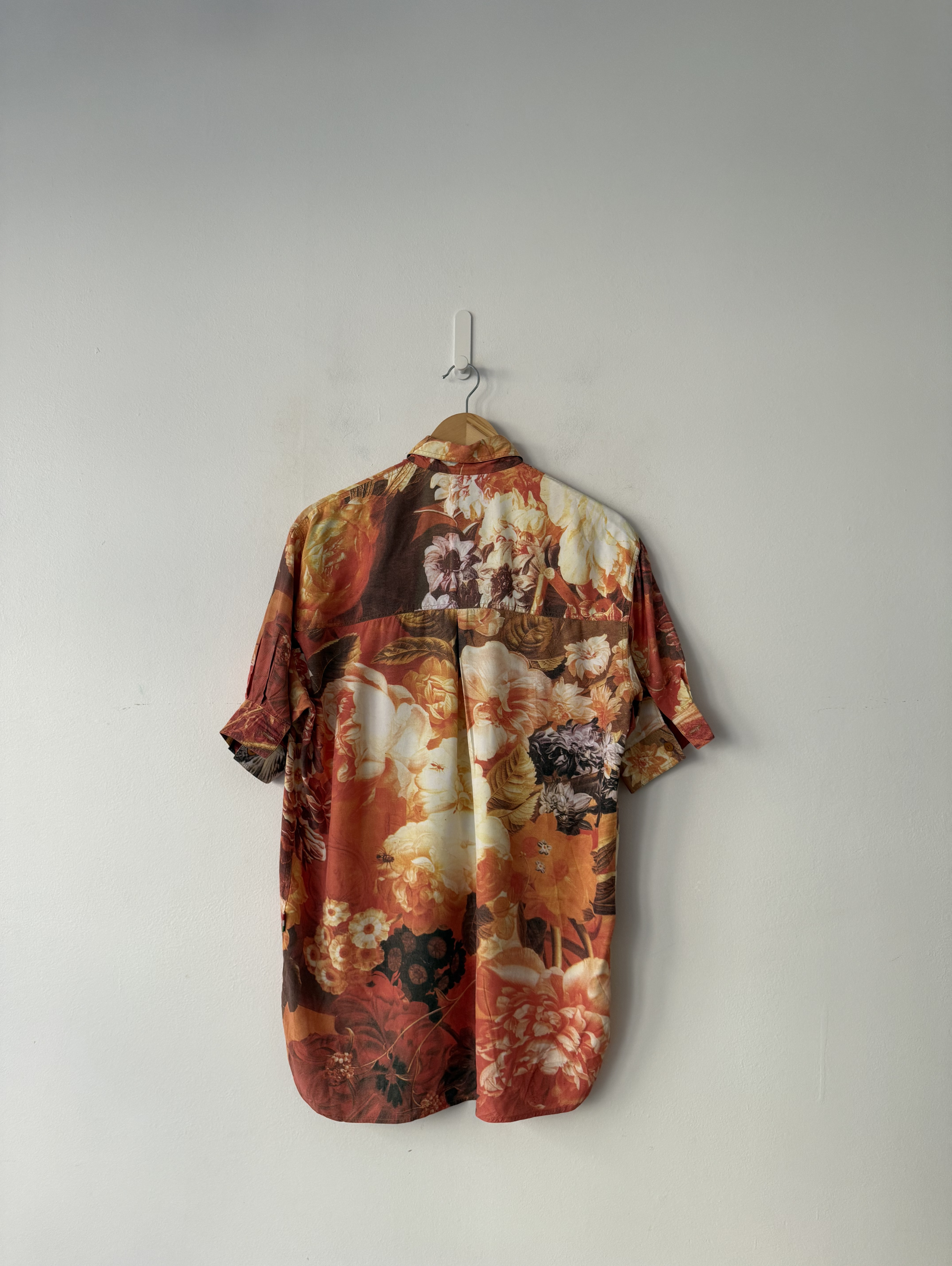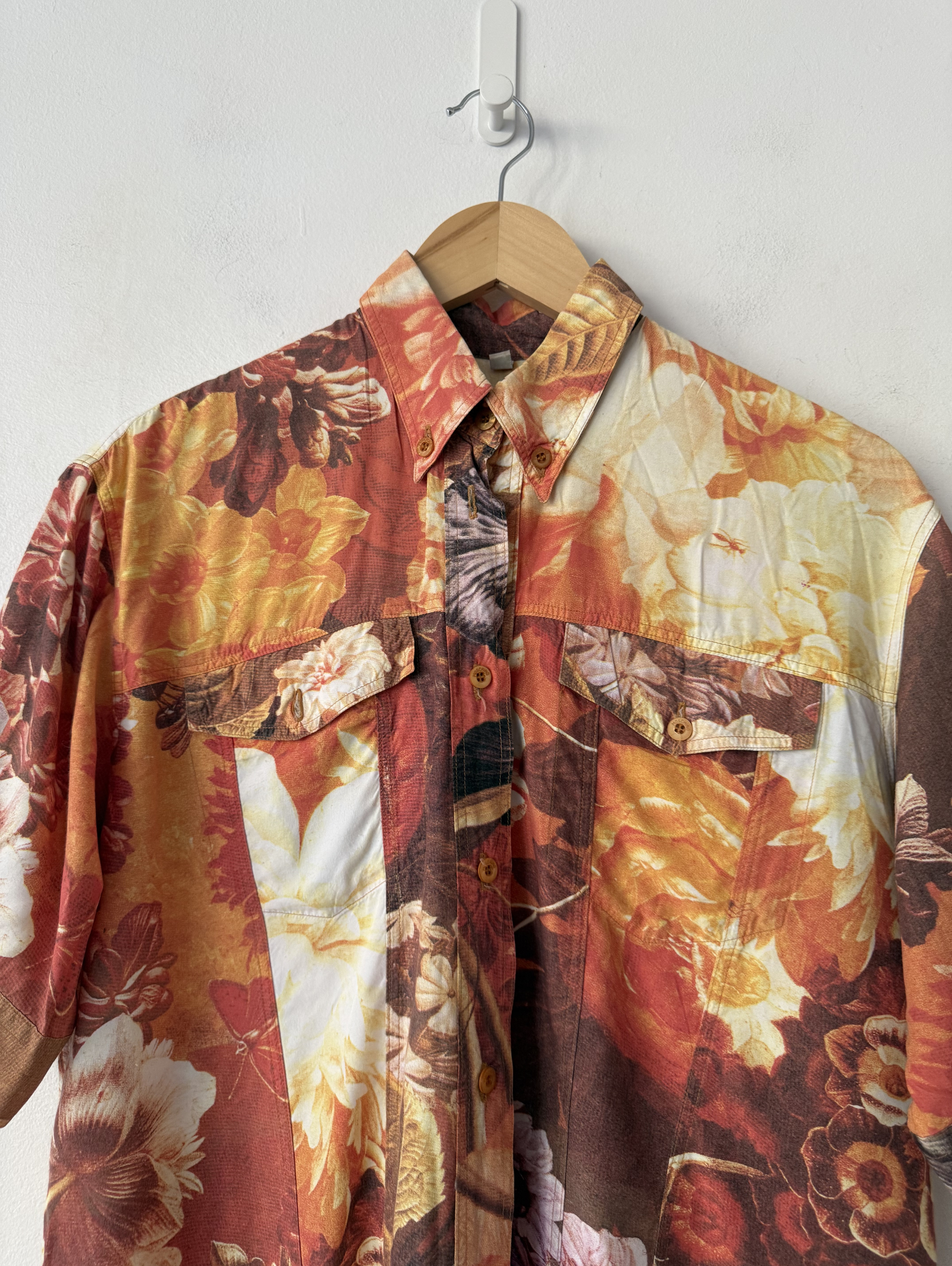 Yellow and orange floral print, button-up, short sleeve shirt. ( see my other items for matching trousers).