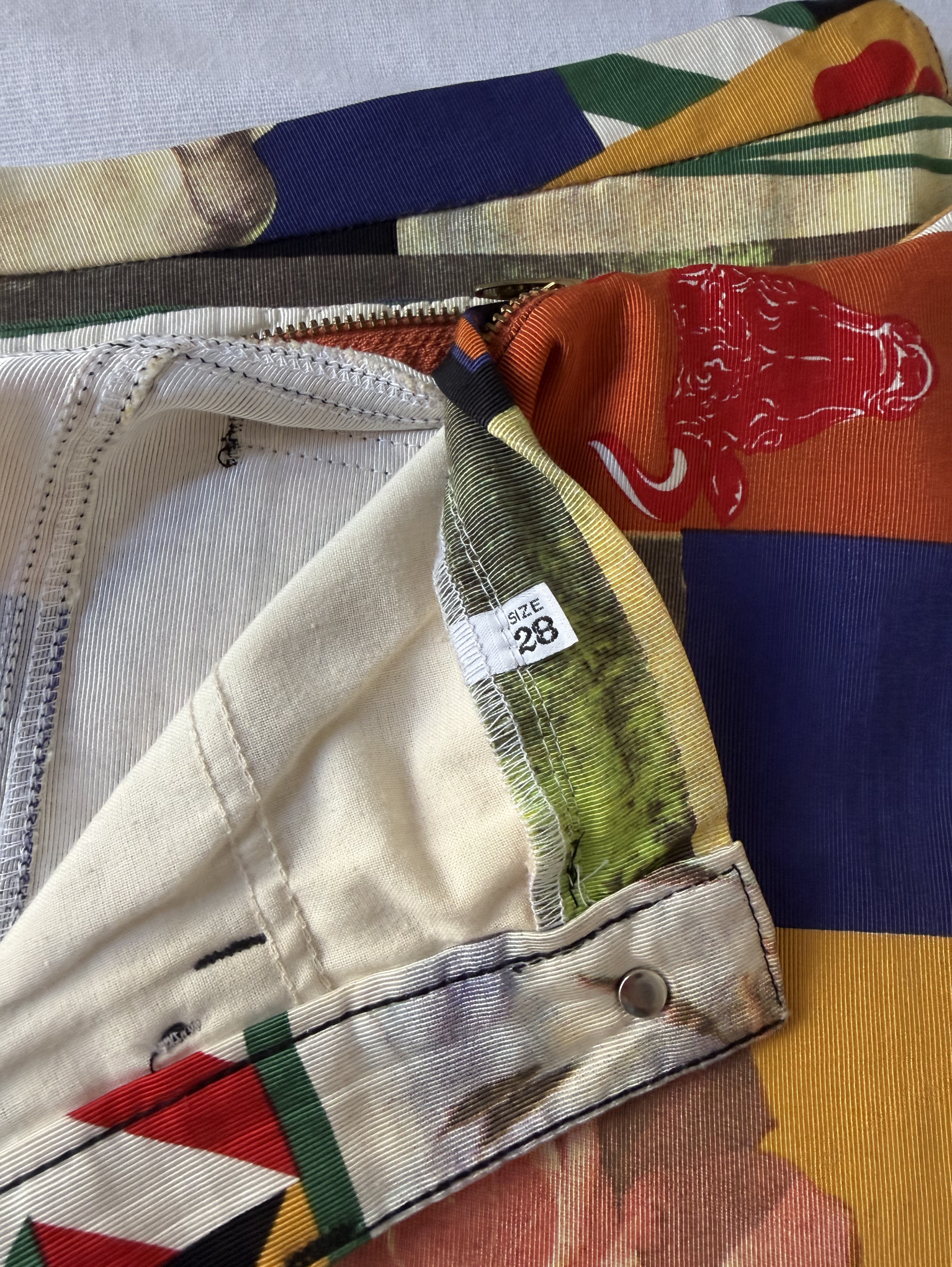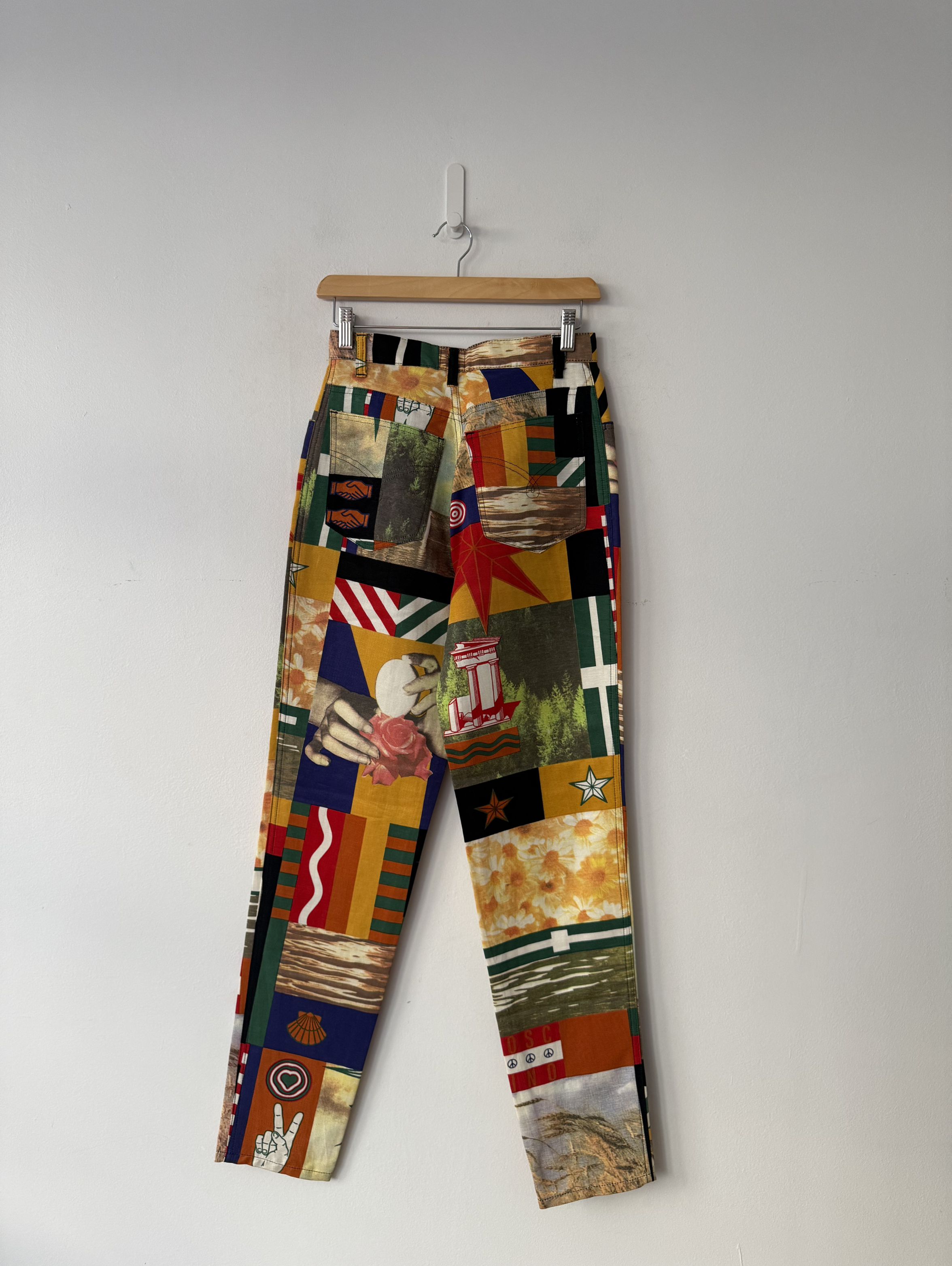 Vintage sun patchwork printed denim trousers.( see my other items for matching shirt)