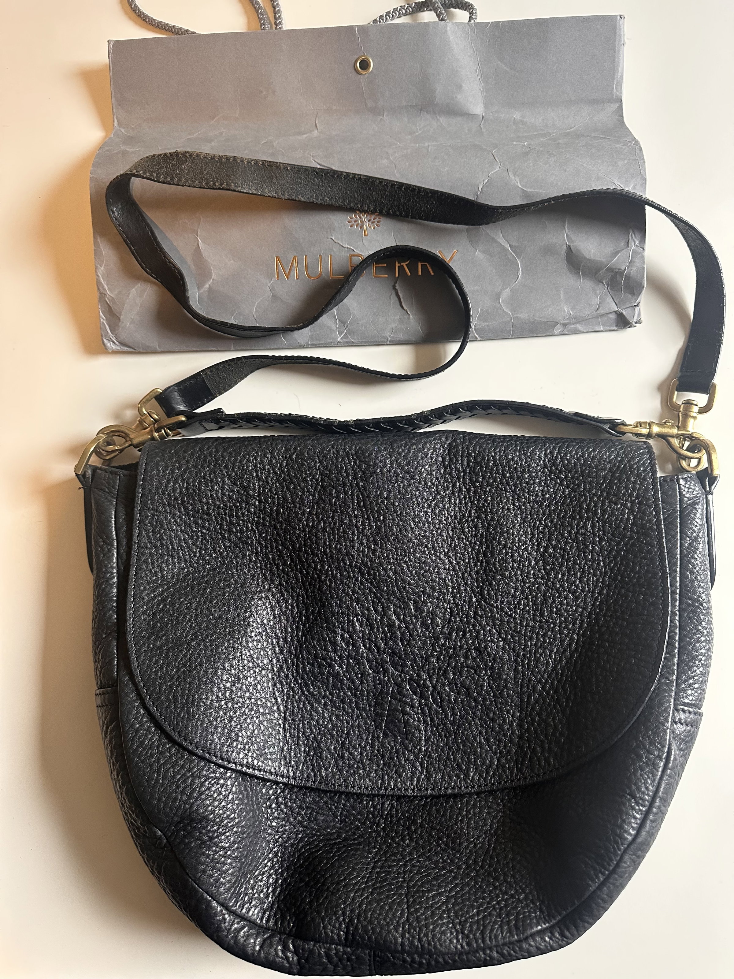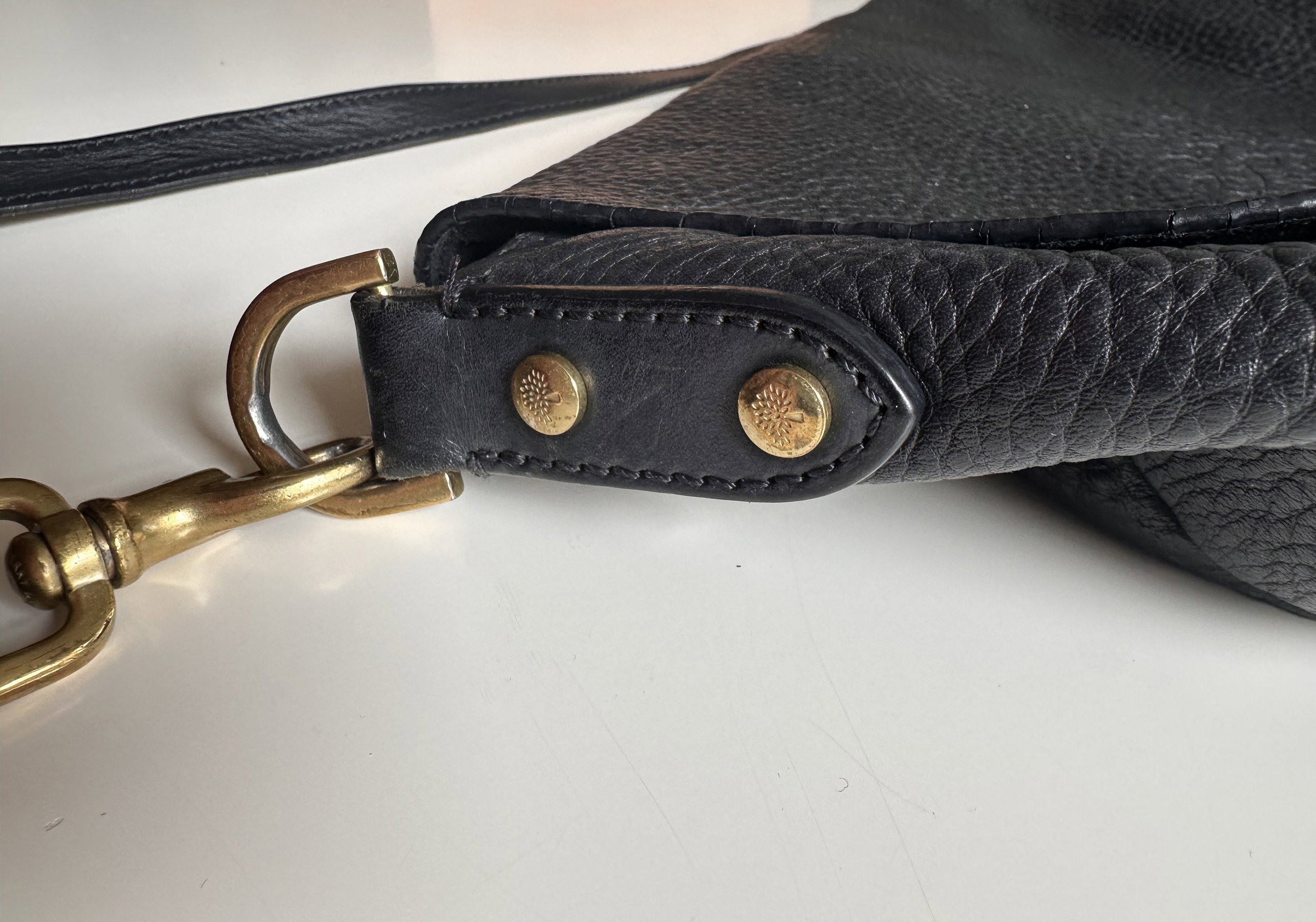 Mulberry black leather slouchy Effie shoulder satchel hobo bag. Buttery soft pebble leather, gold hardware . Medium size. With long strap and short strap. Vintage looking. Both straps have some wear to them, as pictured. Purchased second hand last year, gorgeous bag and a perfect size