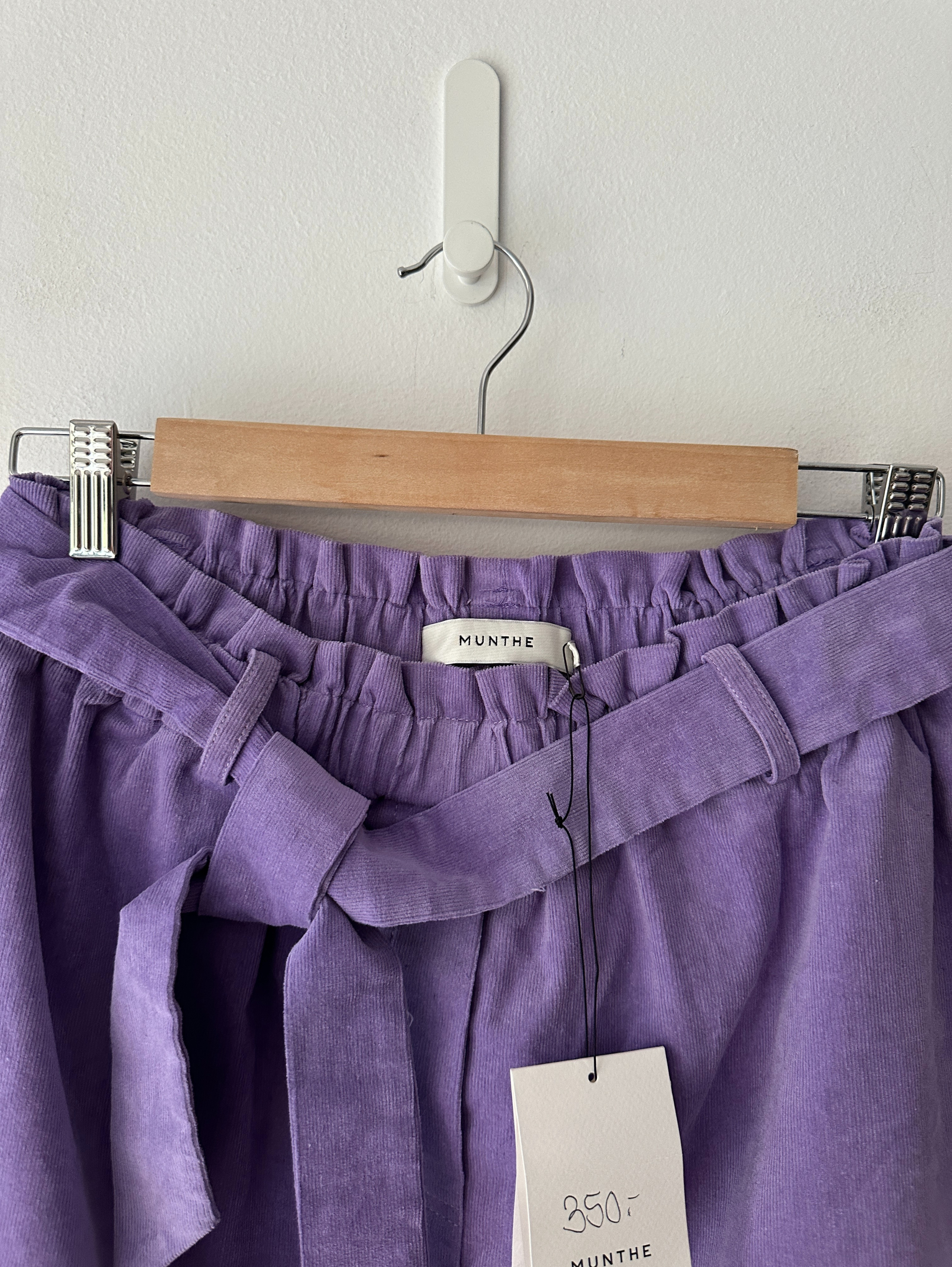 Lavender Corduroy Midi Skirt with elasticated belted tie waist and side pockets.