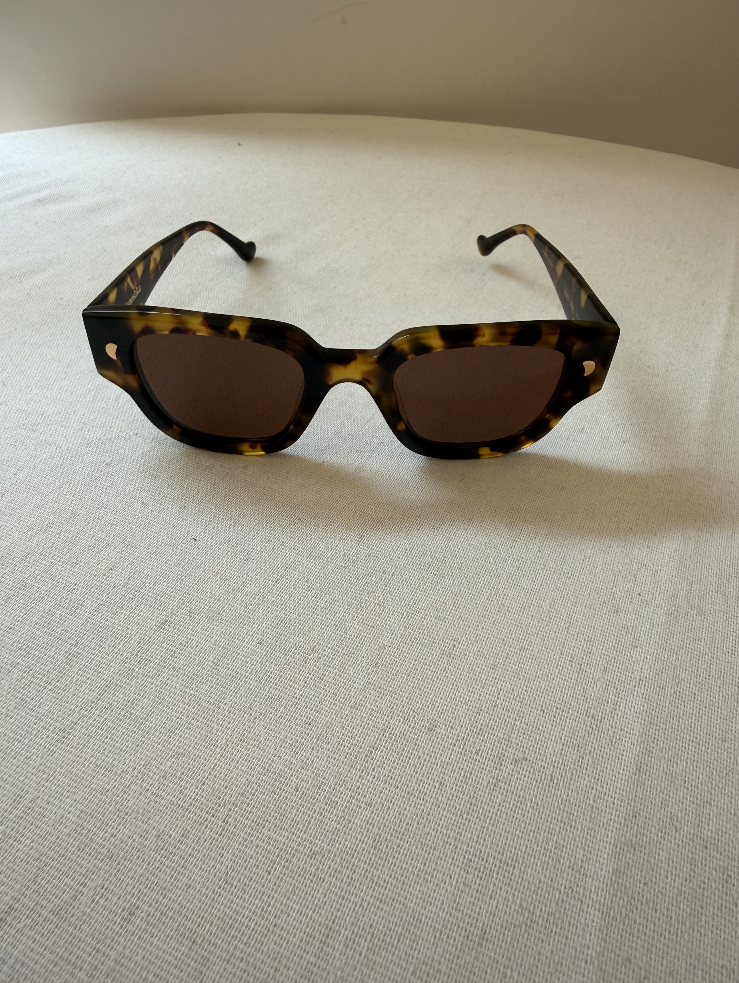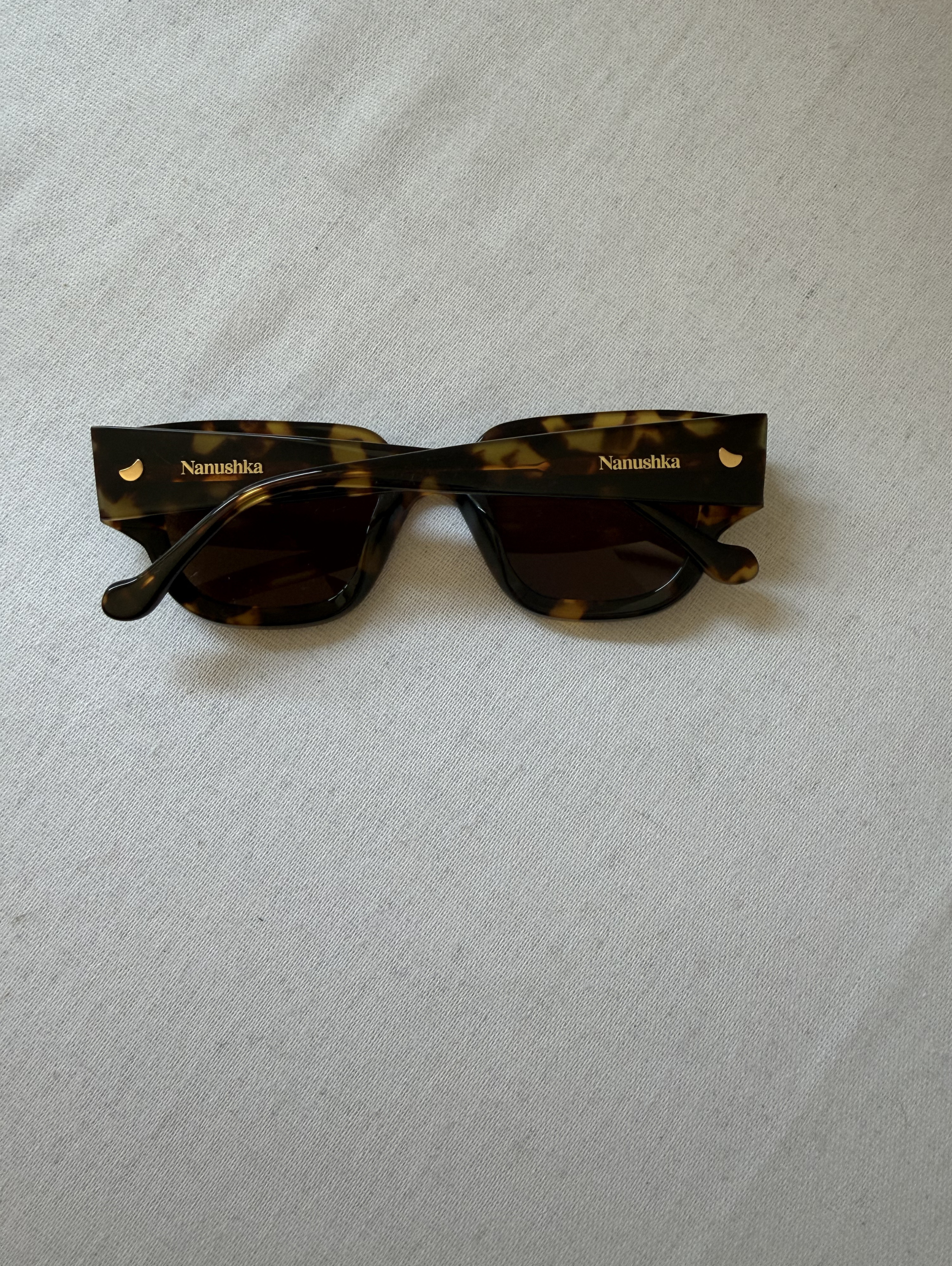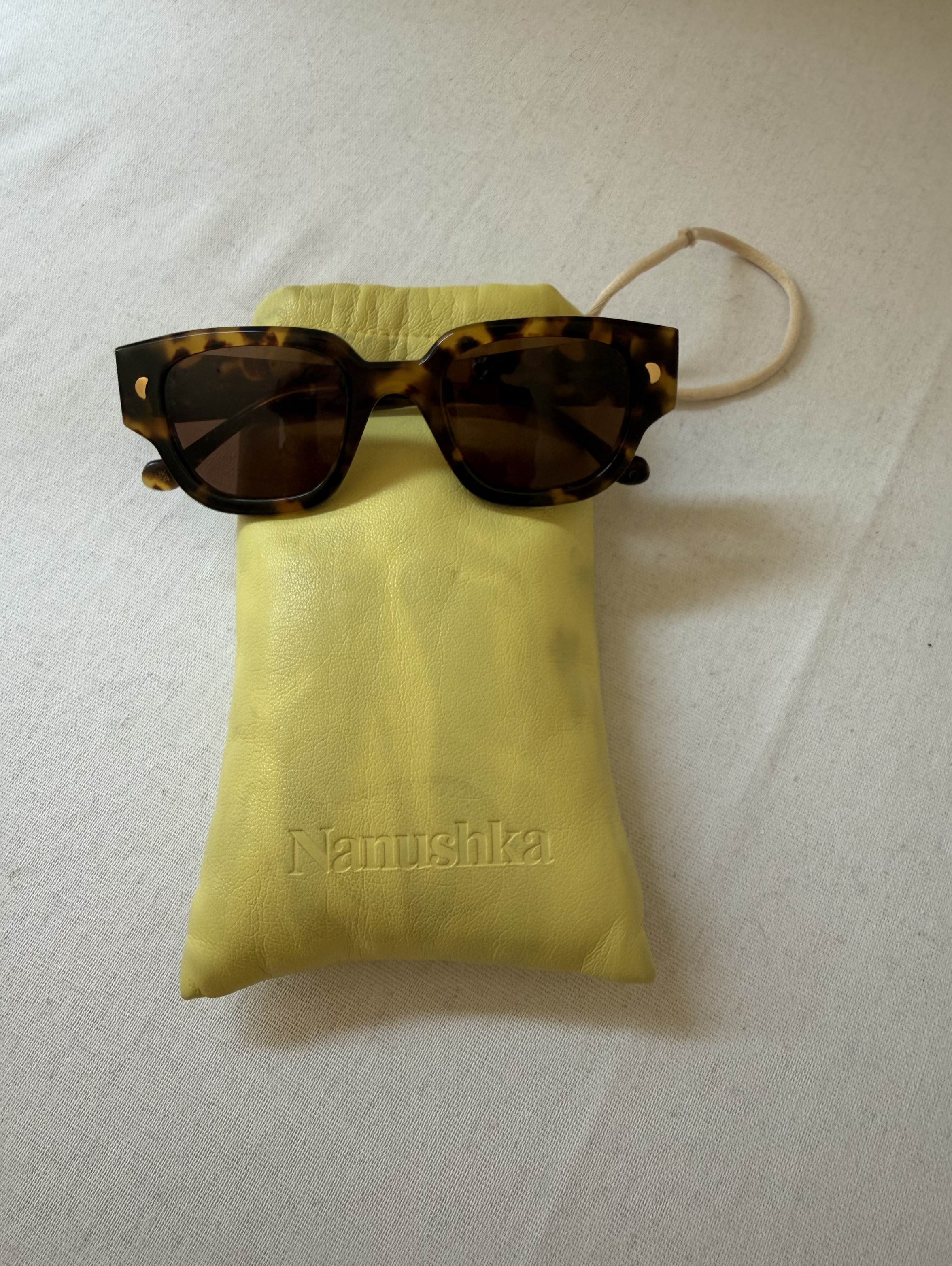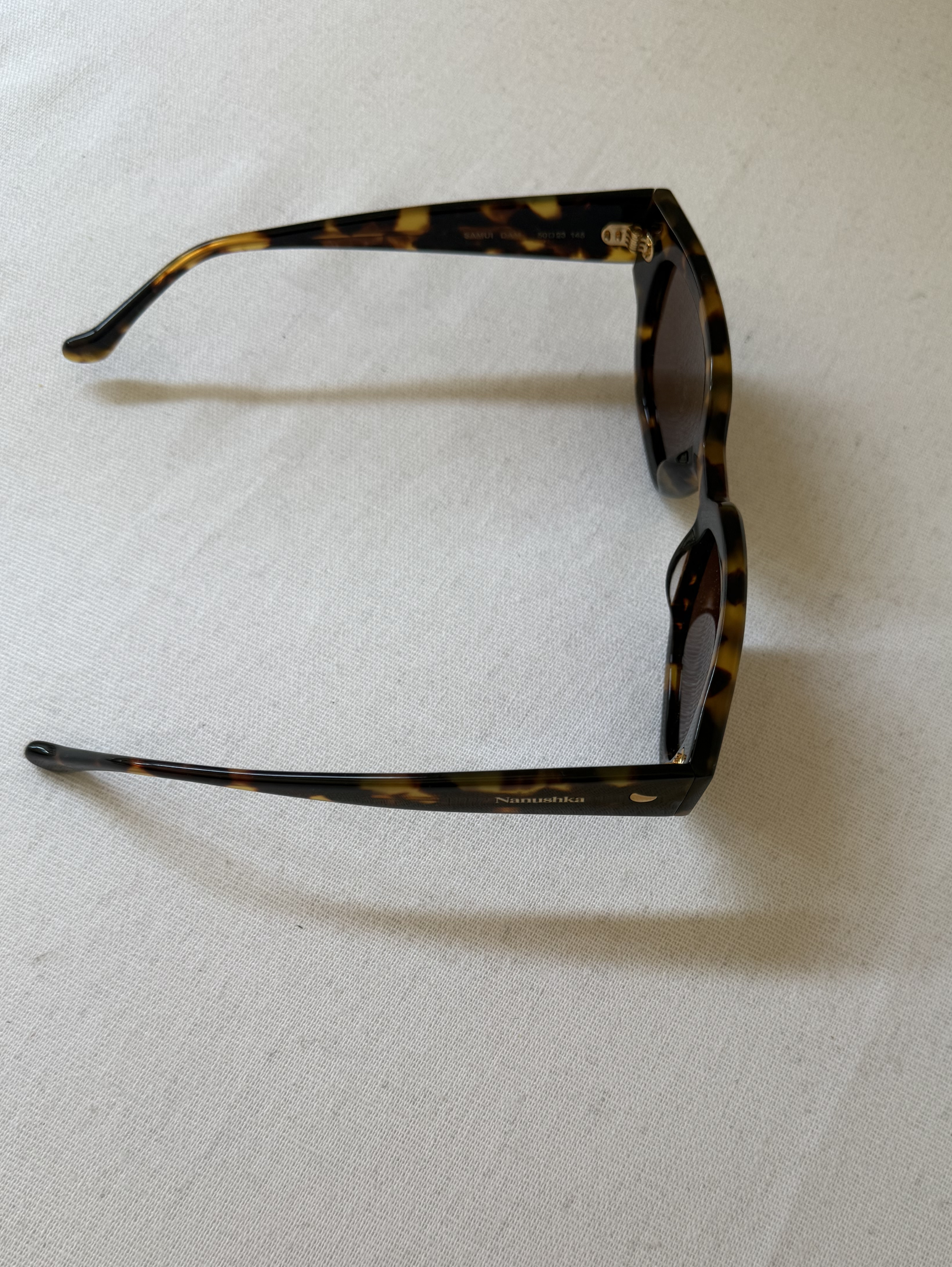 These D-frame sunglasses by Nanushka feature tinted lenses, straight arms, curved tips, and gold-tone hardware. These sunglasses come with a protective case.