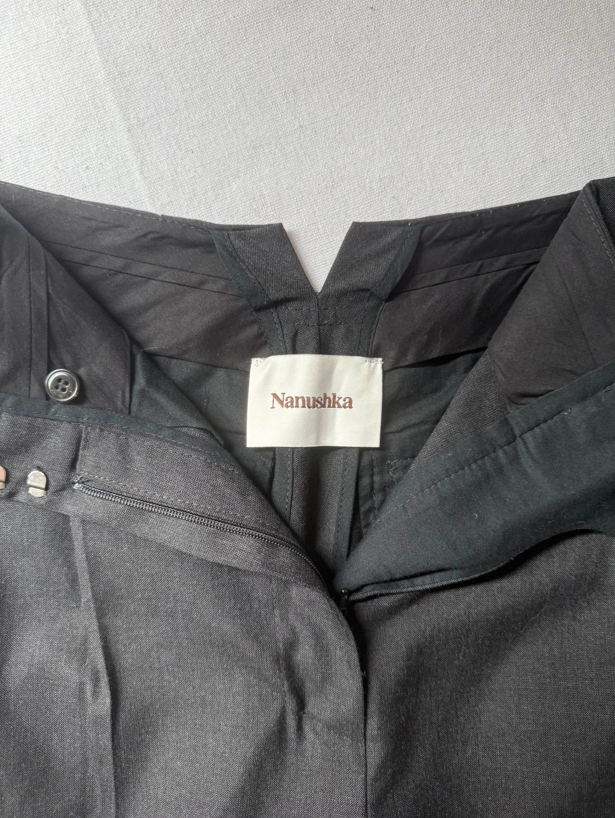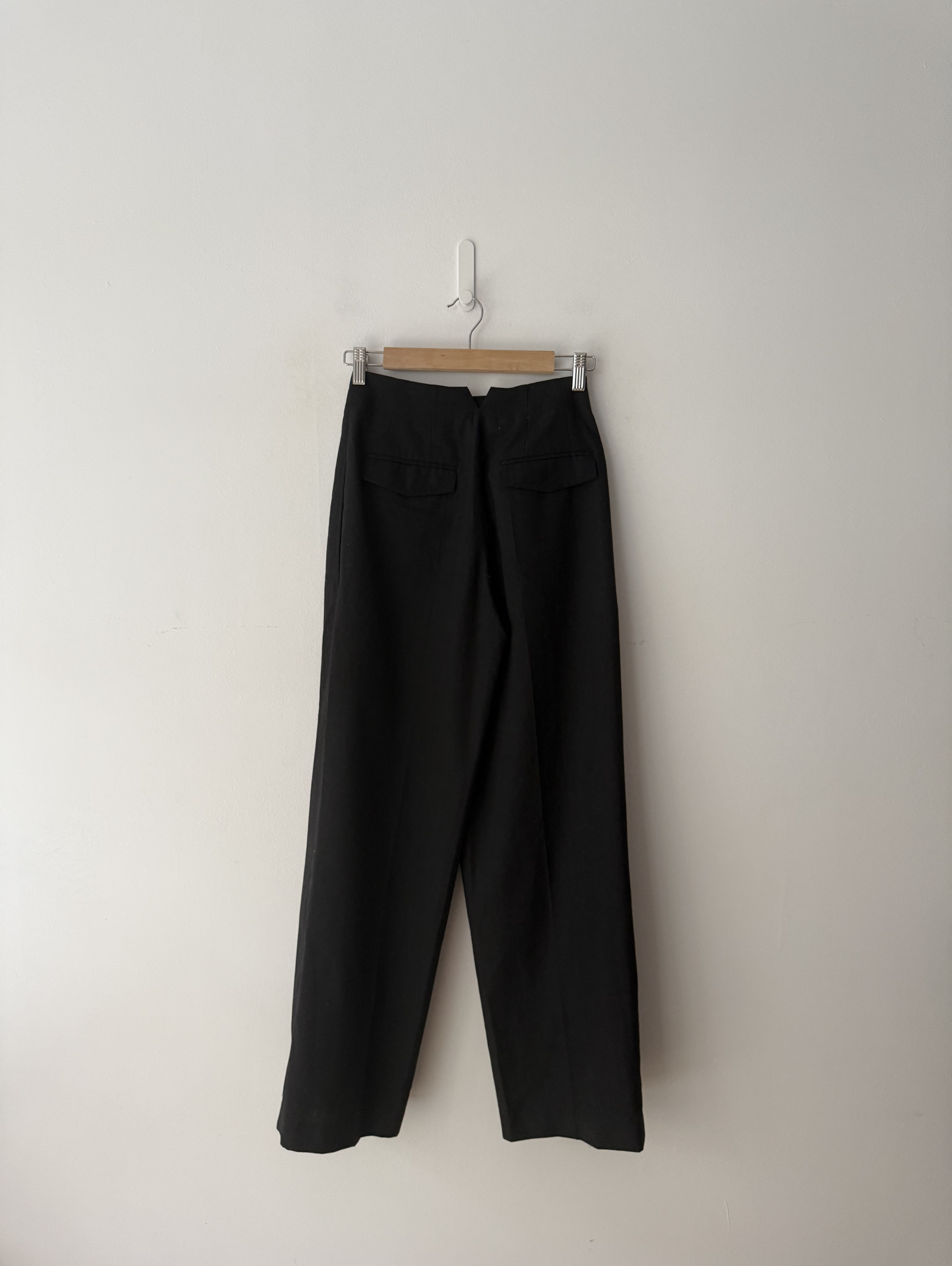 Straight-leg pleated-waist trousers. These are sample trousers and price is reflective of that.