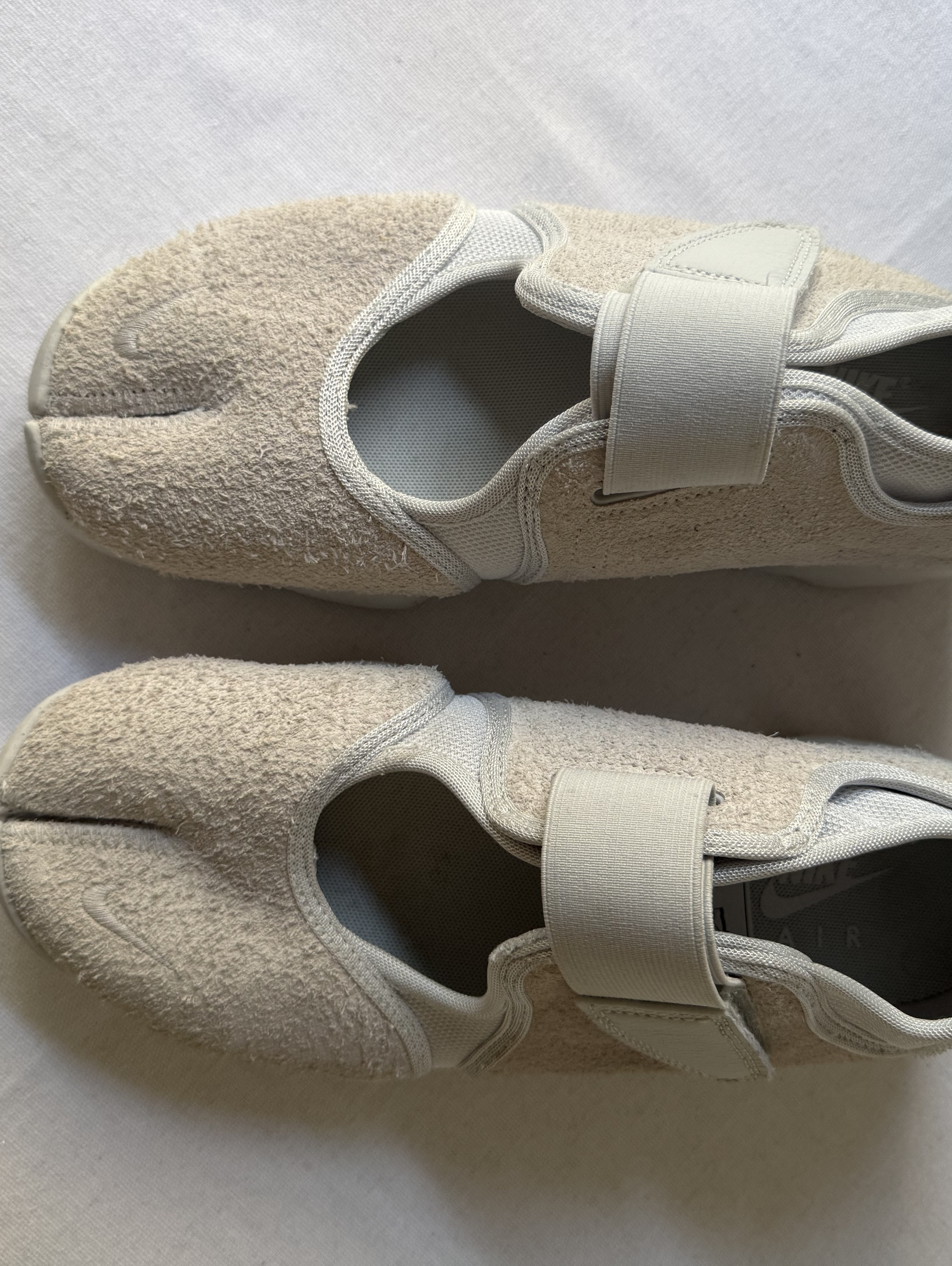 Nike's 'Air Rift' sneakers are most distinguishable by their split-toe design and lace-less front. Designed to replicate the natural motion of barefoot athletes, they're made from panels leather and secure with VELCRO® straps at the front and back.
