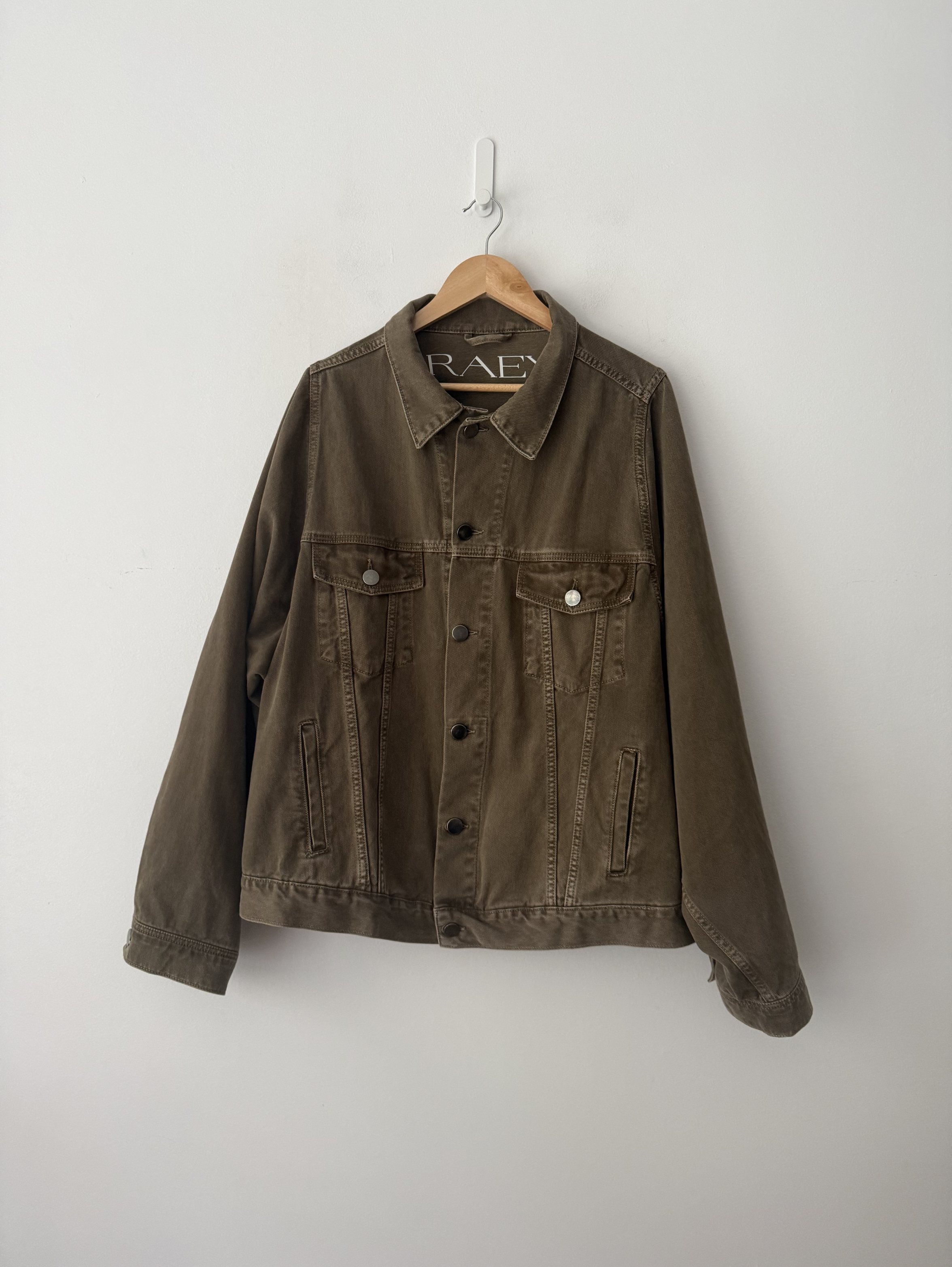 Raey reimagines that classic denim jacket in earthy neutrals for this taupe-brown style, made from organic fibres to an oversized shape with flap pockets.