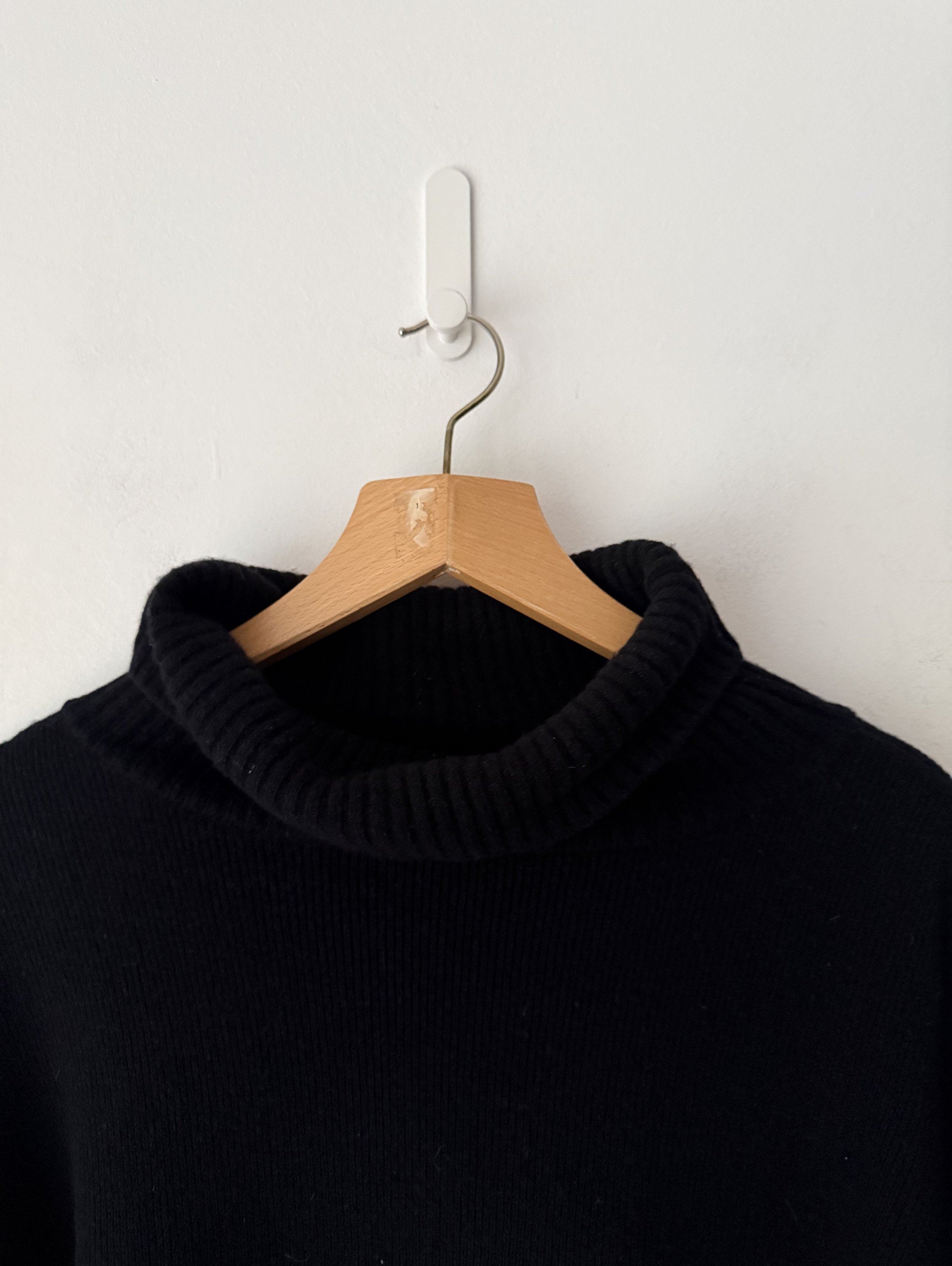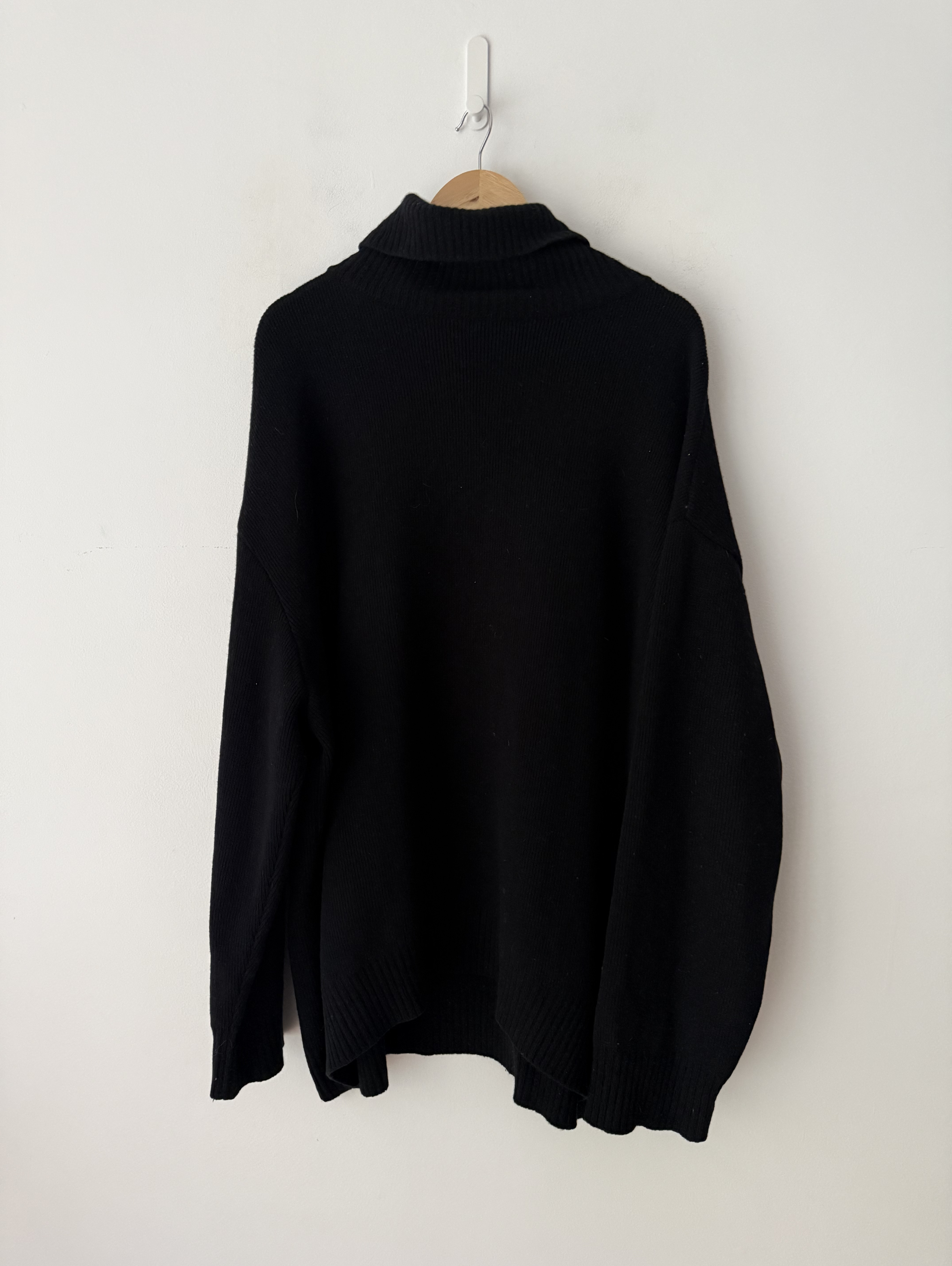 Oversized wool rib cuffed jumper, with ribbed roll neck. Dry Clean Only.