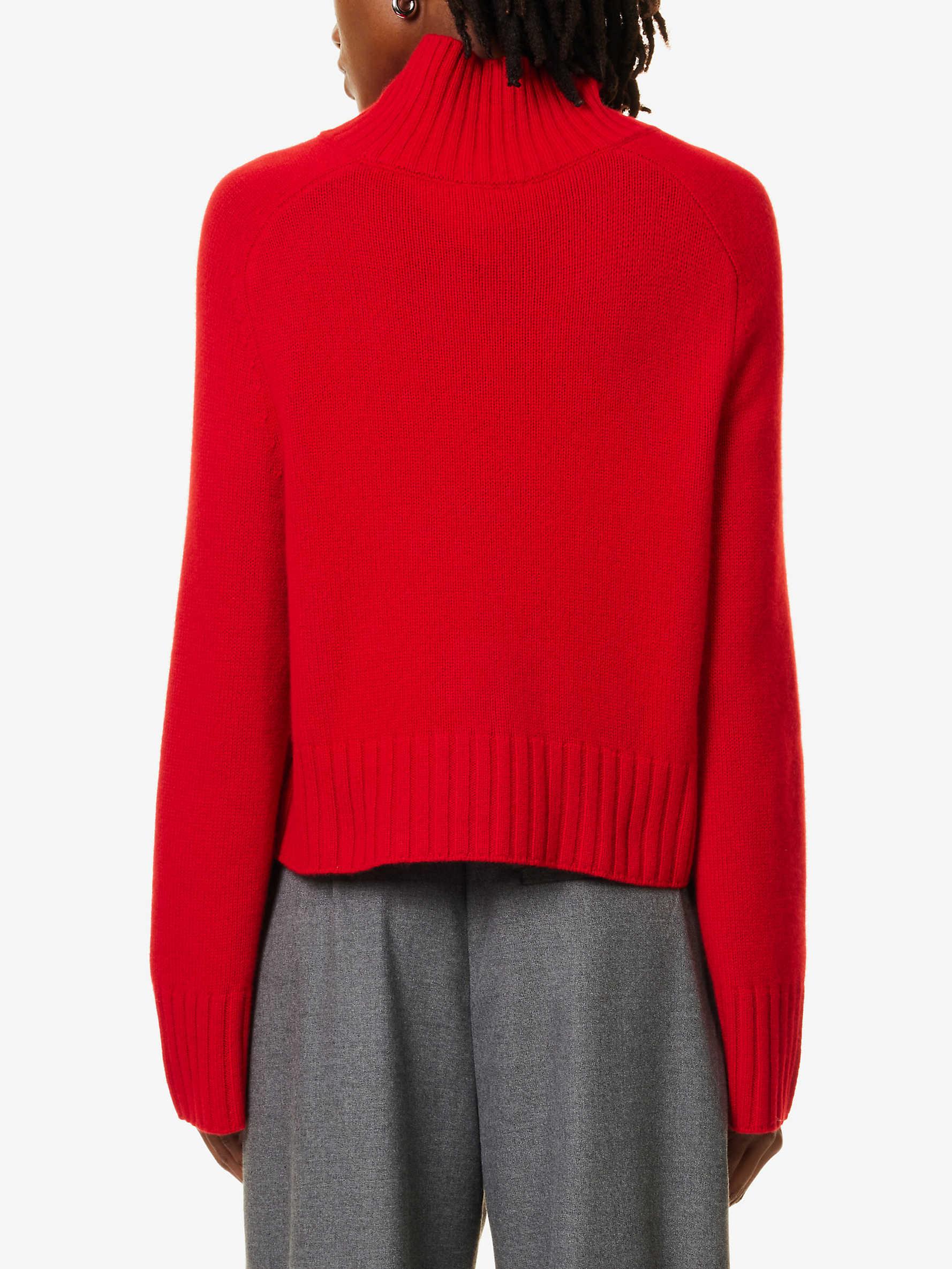 Reformation recycled-cashmere and wool jumper. Slips on. Relaxed fit, turtle neck, long raglan sleeves, ribbed trims.