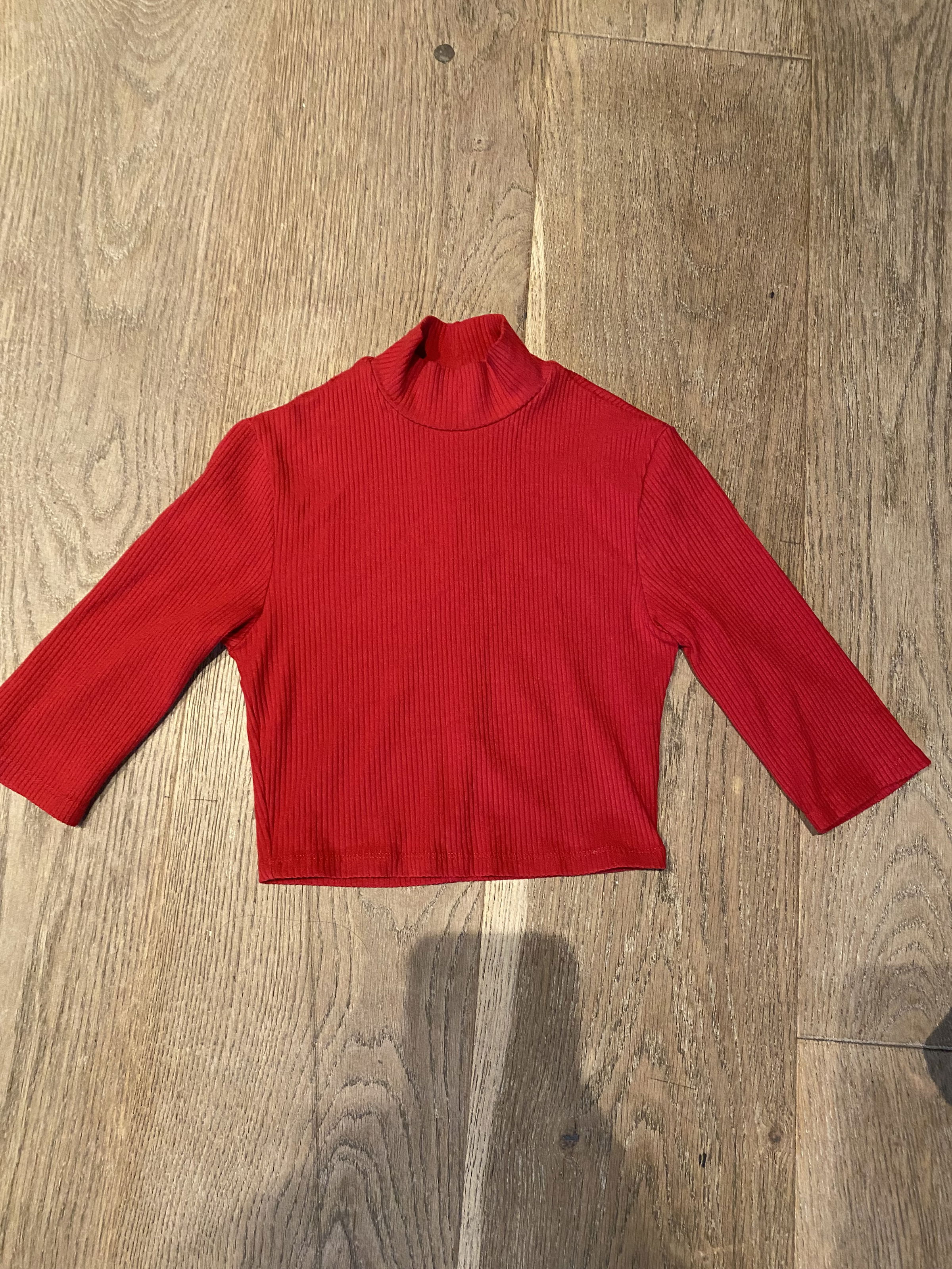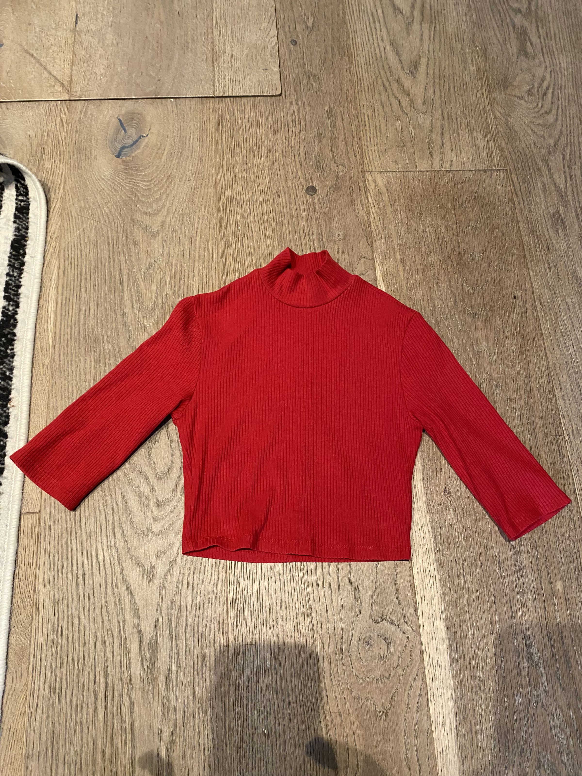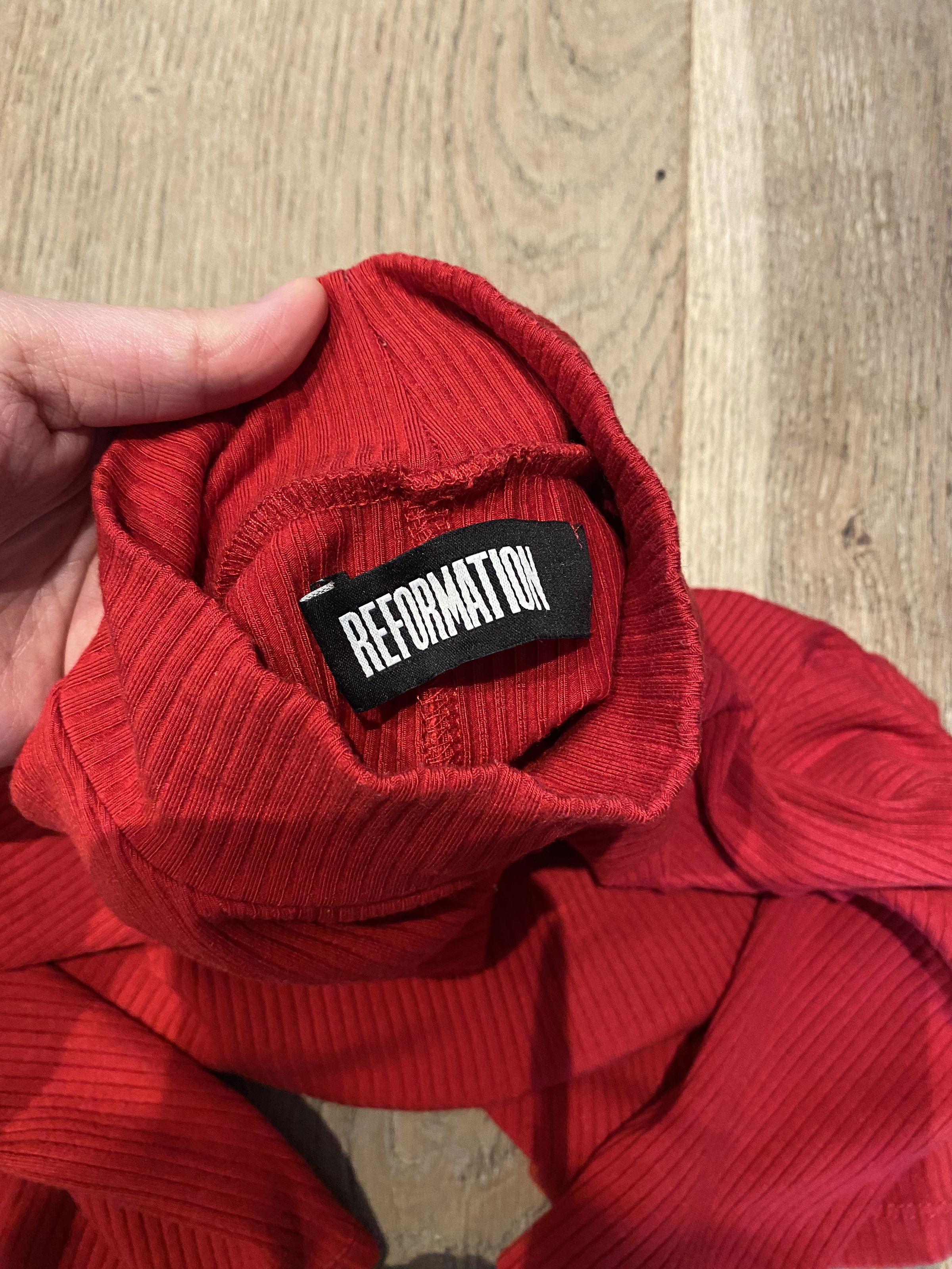 Rarely worn, great condition. 1/2 sleeve length. Reformation Tara Mock Neck Crop Top. Slimly styled to finish just short of your waist, this flirty little top is cut in a comfy rib knit. 88% Tencel® lyocell, 12% spandex. Hand wash, dry flat.
