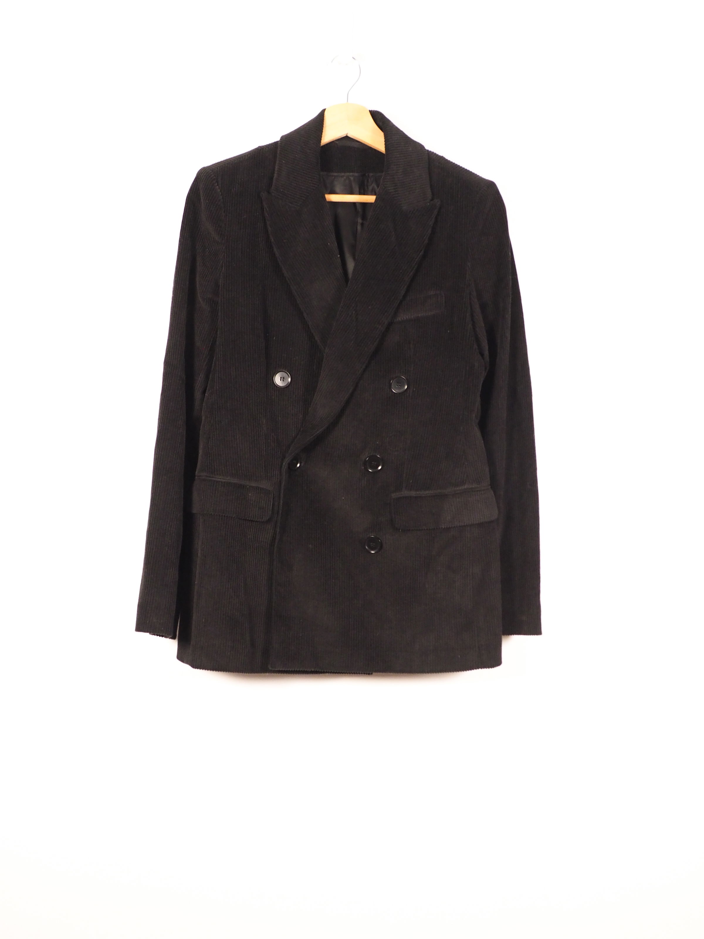 Crafted from soft cotton-corduroy in classic black, this double-breasted blazer has high peak lapels, shoulder darts and a pair of front flap pockets. It's tailored with a single vent so it's not restrictive and fully lined so it's a breeze to layer.