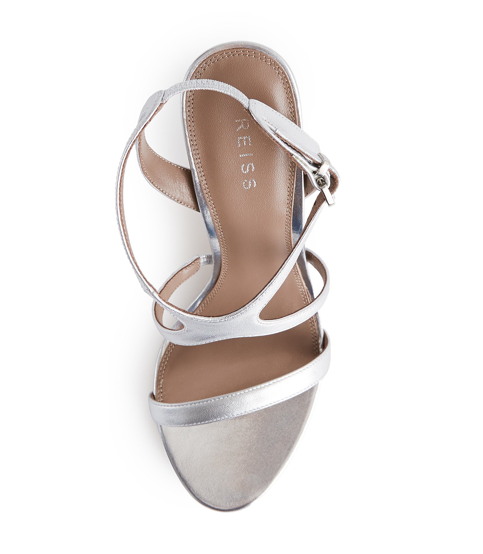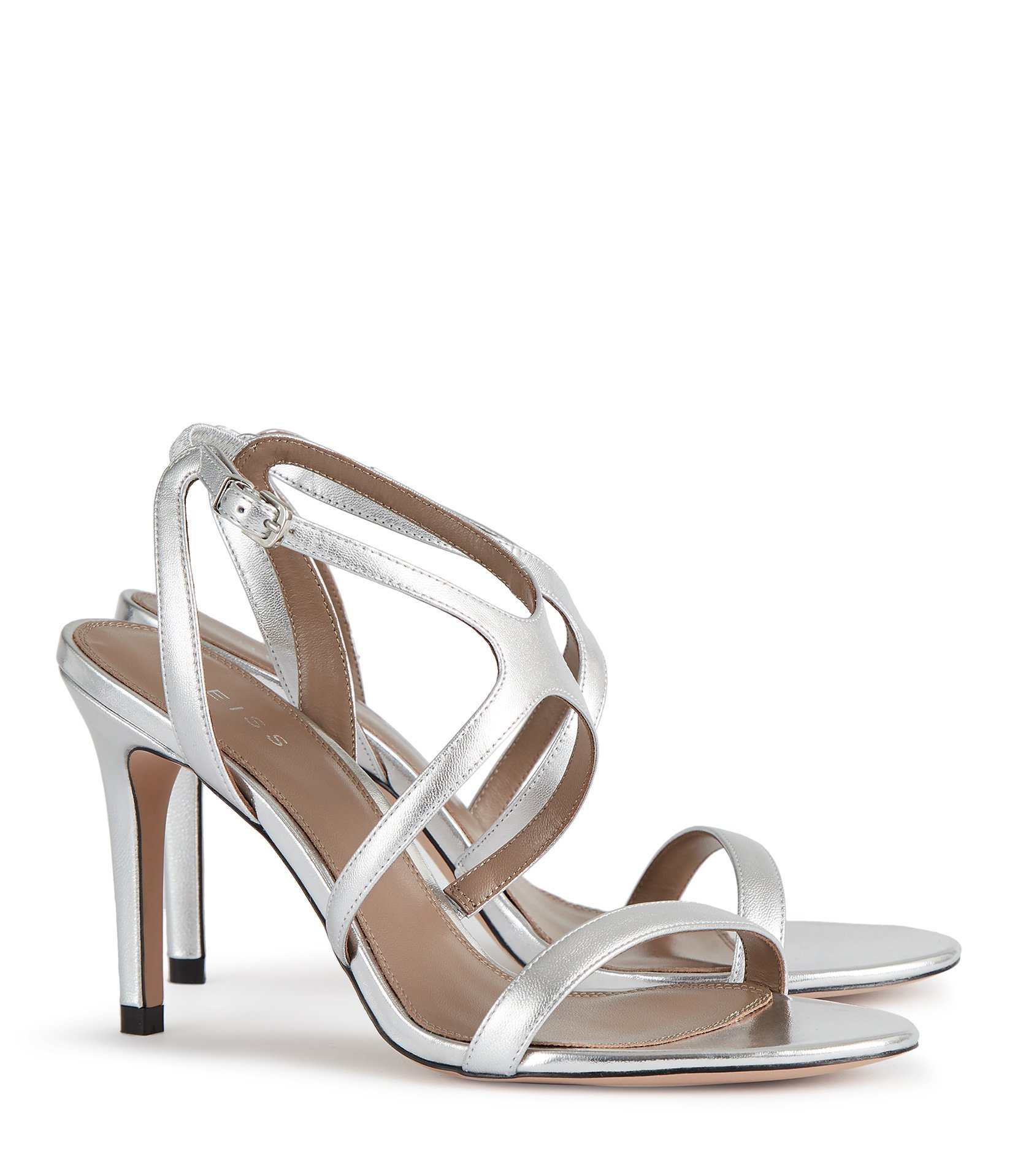 The Medea leather shoes are crafted to a flattering, open-toe silhouette with a crossover front strap that will visually elongate the leg and add a striking design feature. Imagined in a high-shine silver hue that lends itself just as well to exotic prints as it does to monochromatic colour palettes, they're the kind of pair you can wear with just about anything.