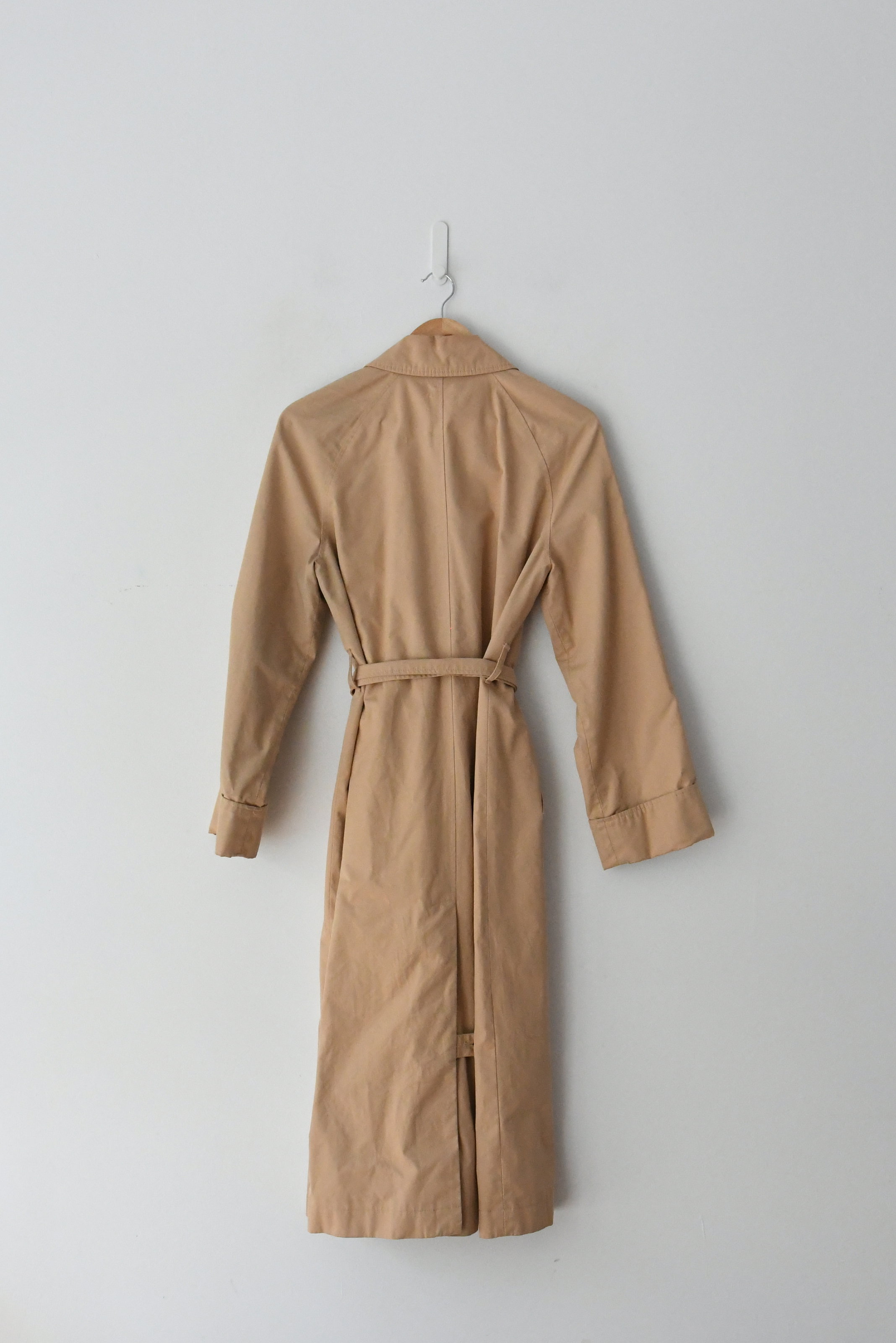 Belted trench, with covered button fastening and tie waist. Dry Clean Only.