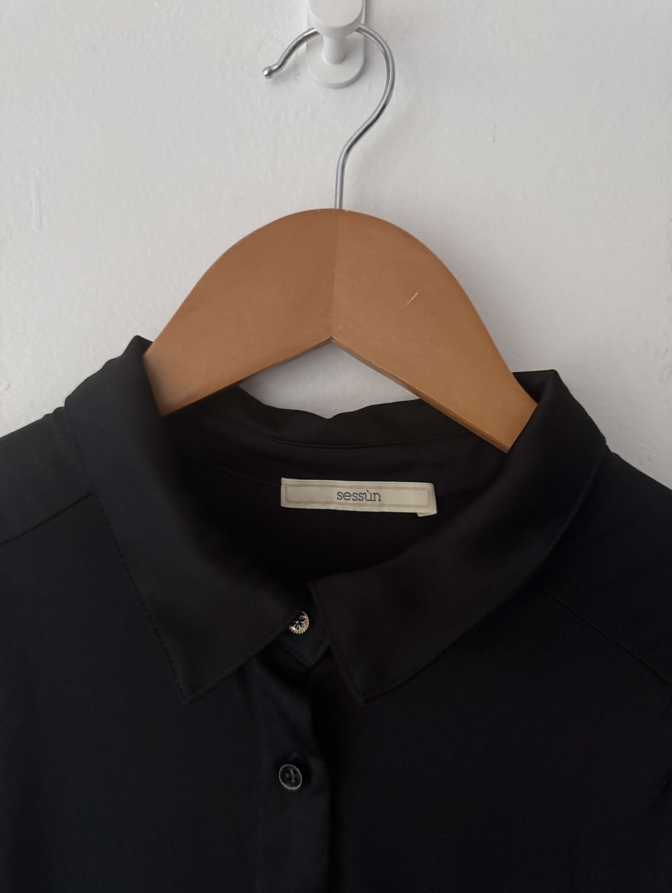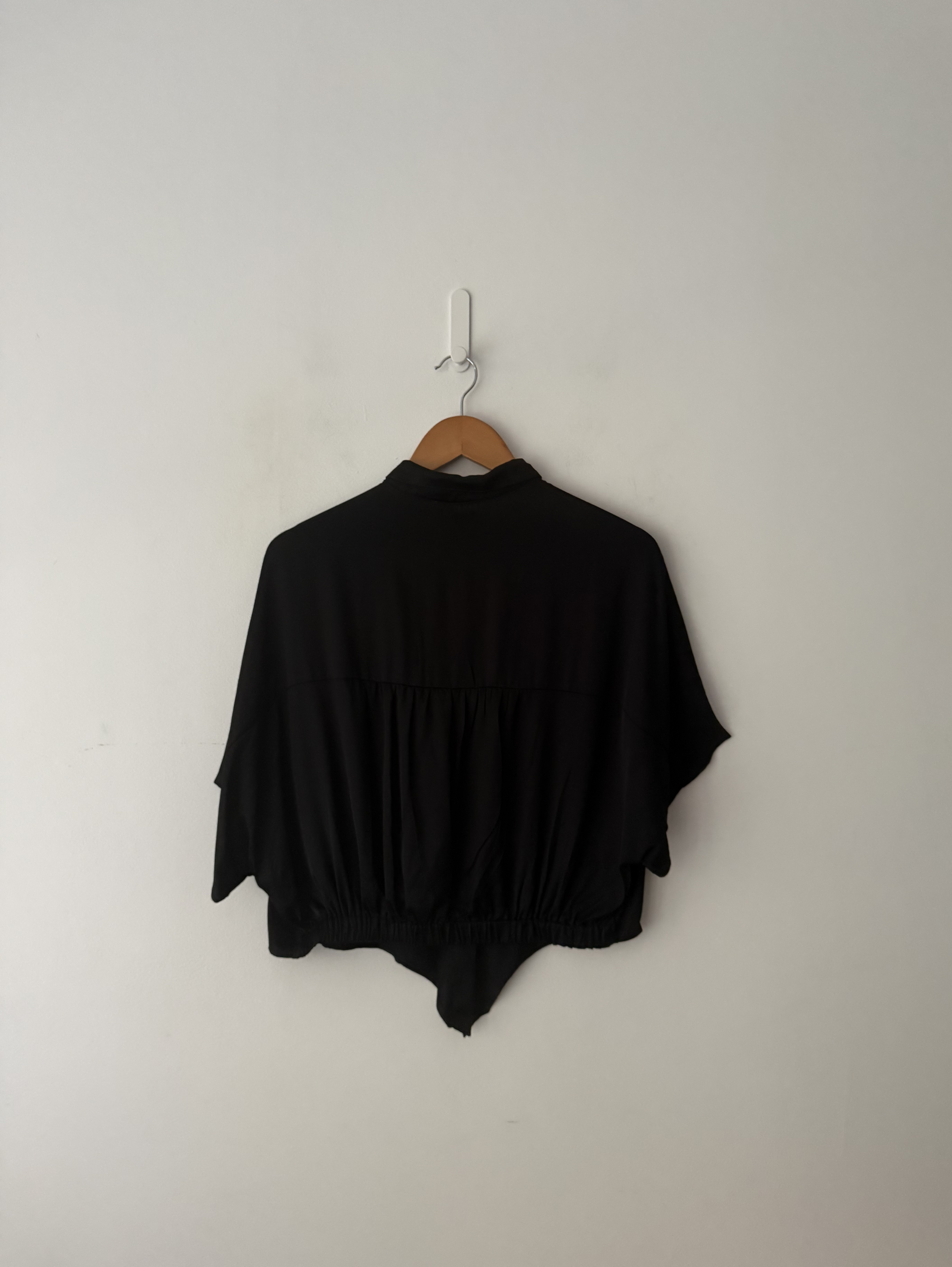 Alfassa Night black shirt with an elasticated back waist and front tie detail.