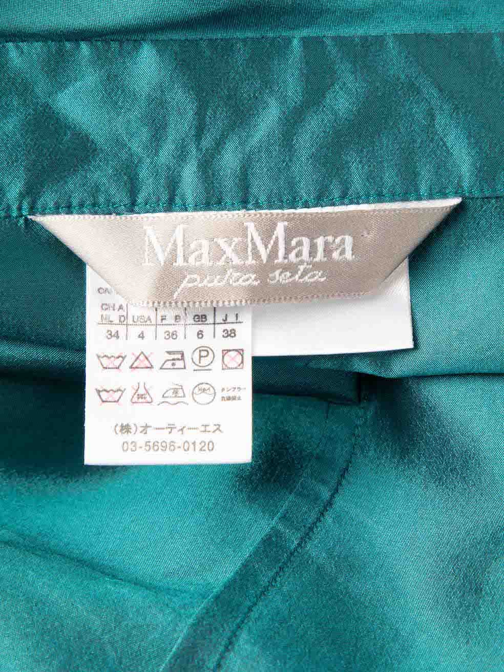 Green silk wrap tie shirt in excellent, pre-loved condition. Composition: 100% Silk. Professional dry clean only. Shoulders: 8 cm / Sleeve Length: 37 cm / Bust: 40 cm / Waist: 37 cm / Length: 52 cm