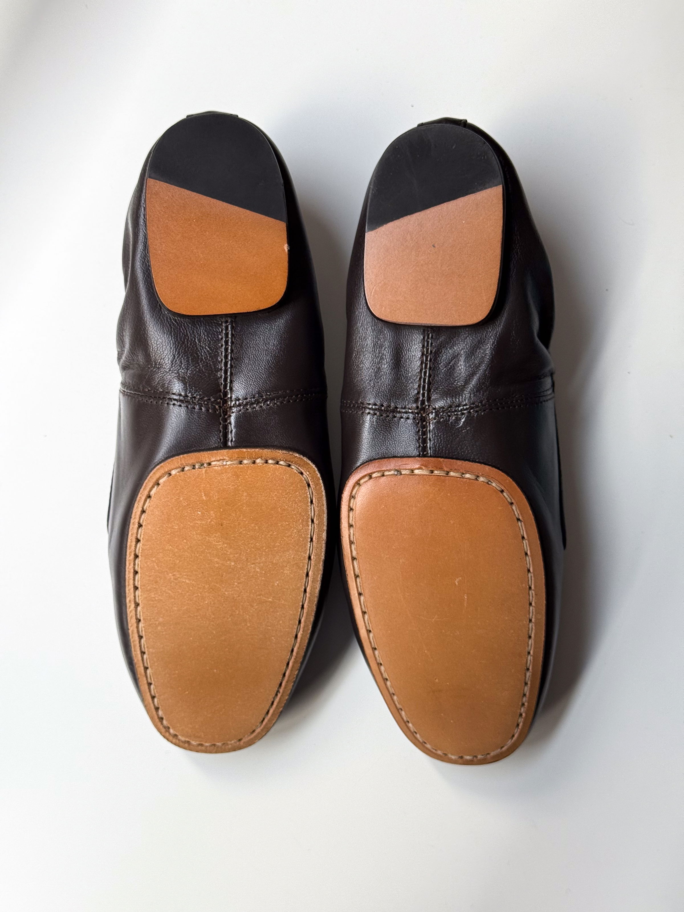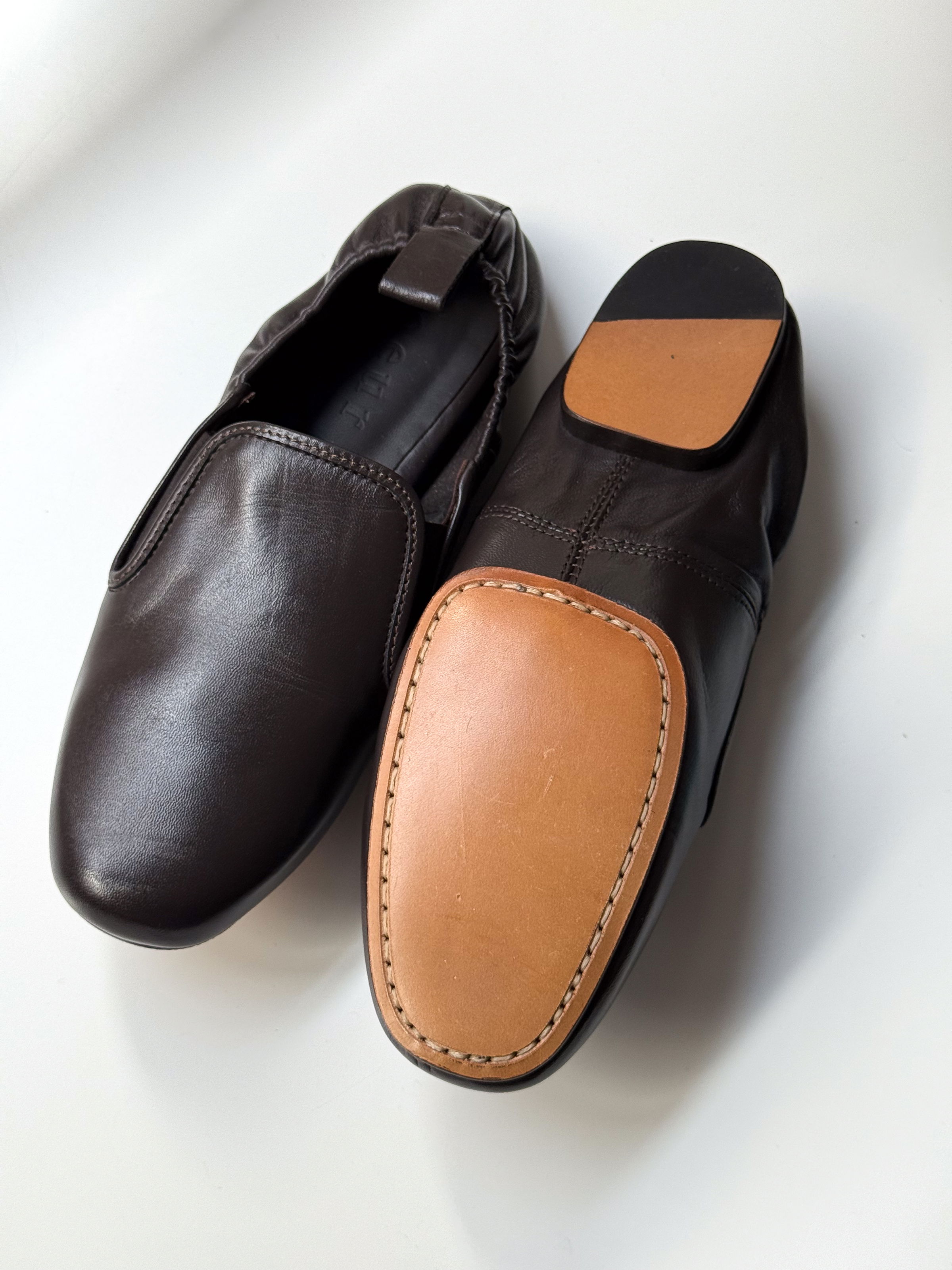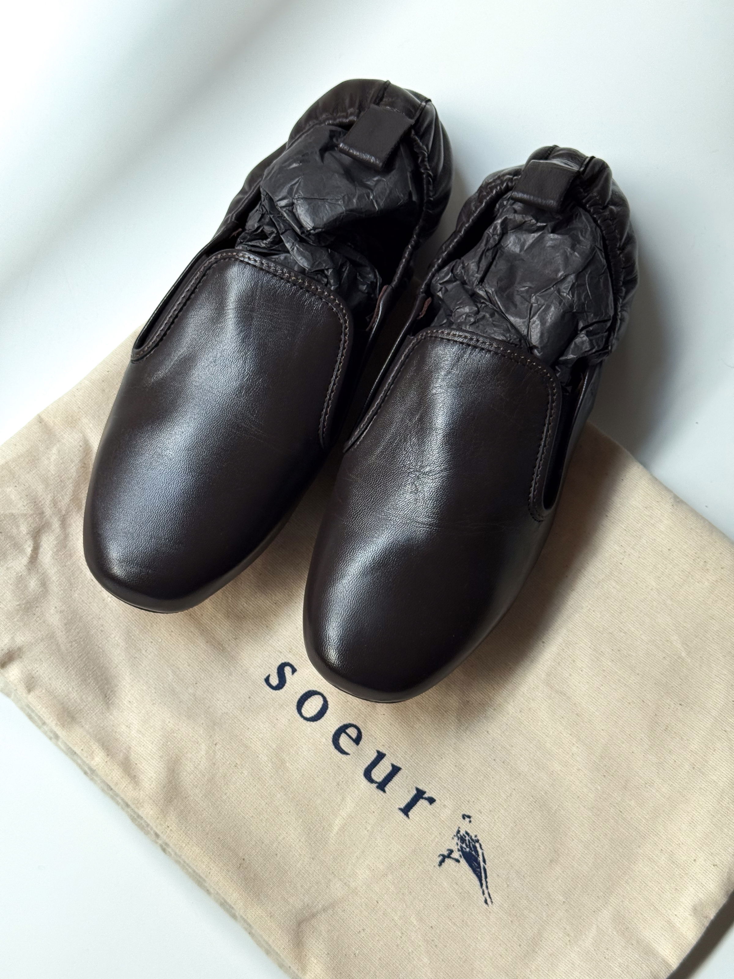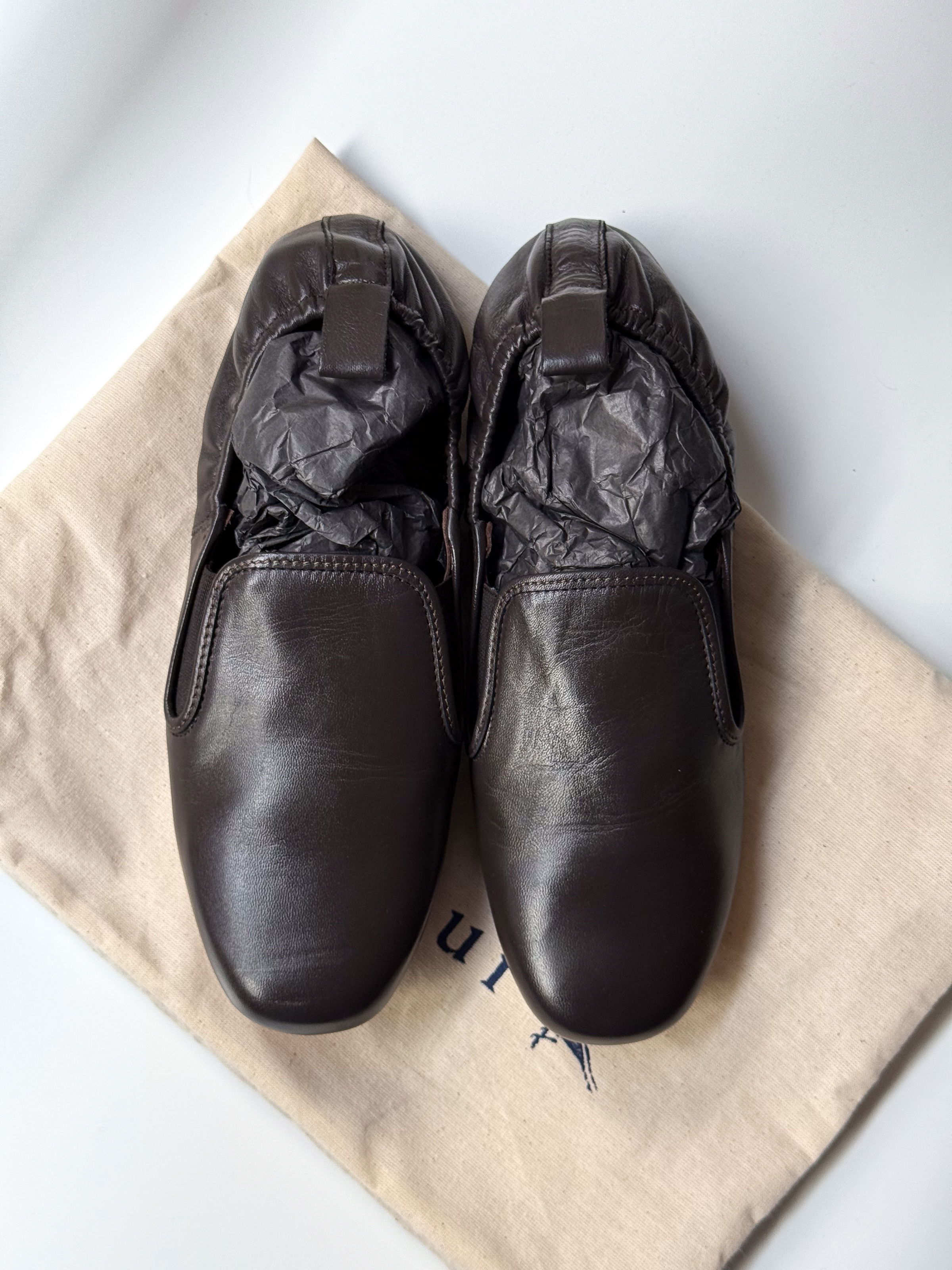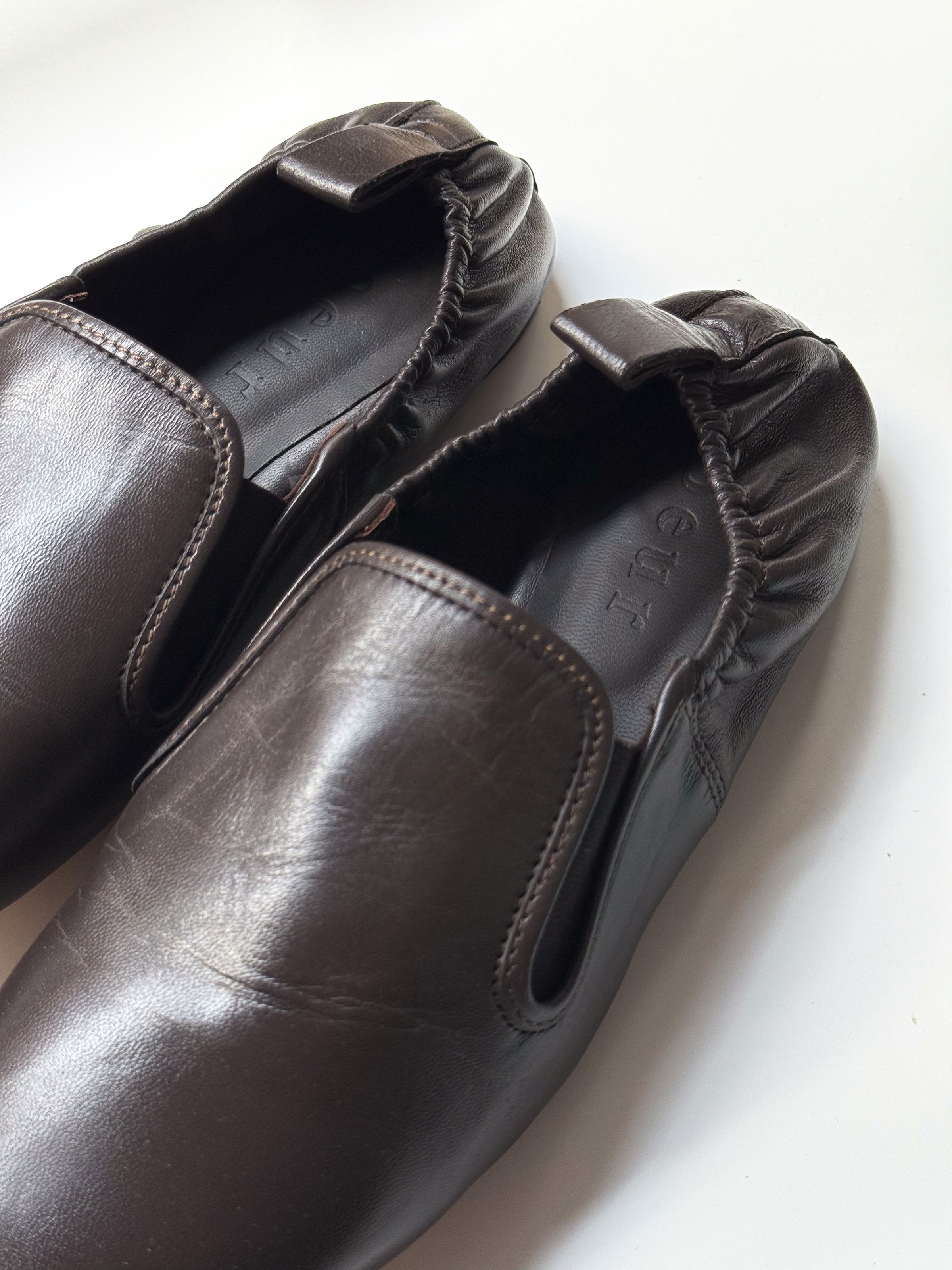 Soft leather ballet flats with round toe and elasticated back.