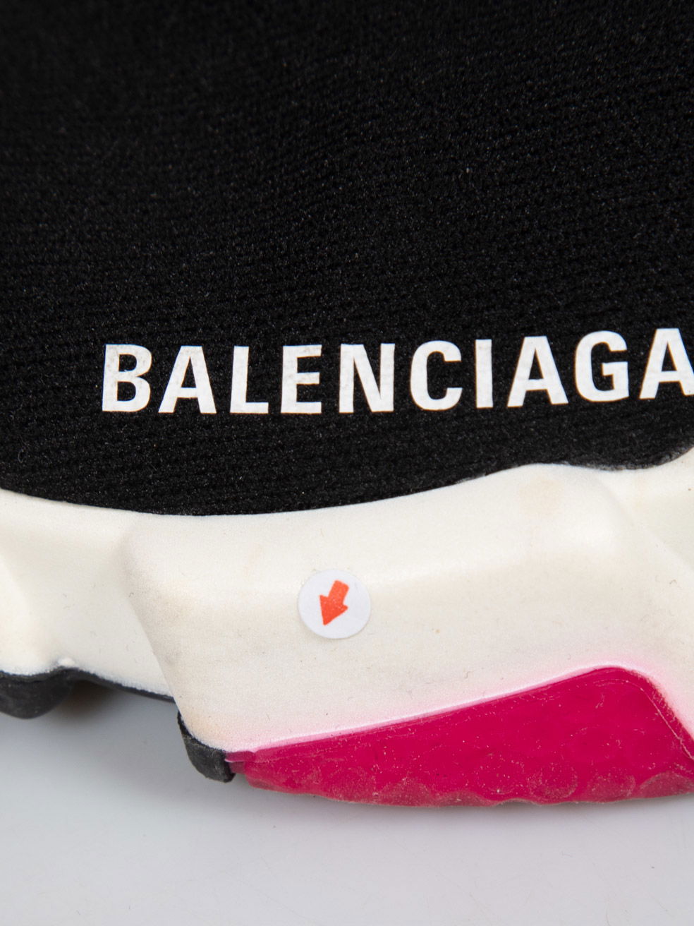 Black Speed sock pink sole trainers in excellent pre-loved condition. Minimal wear is evident. Discolouration round the rim of both soles. Details Slip on. Composition Exterior: Cloth Textile. Interior: Cloth Textile. Product measurements: Soles: 280mm Width Sole: 110mm Insole: 251mm