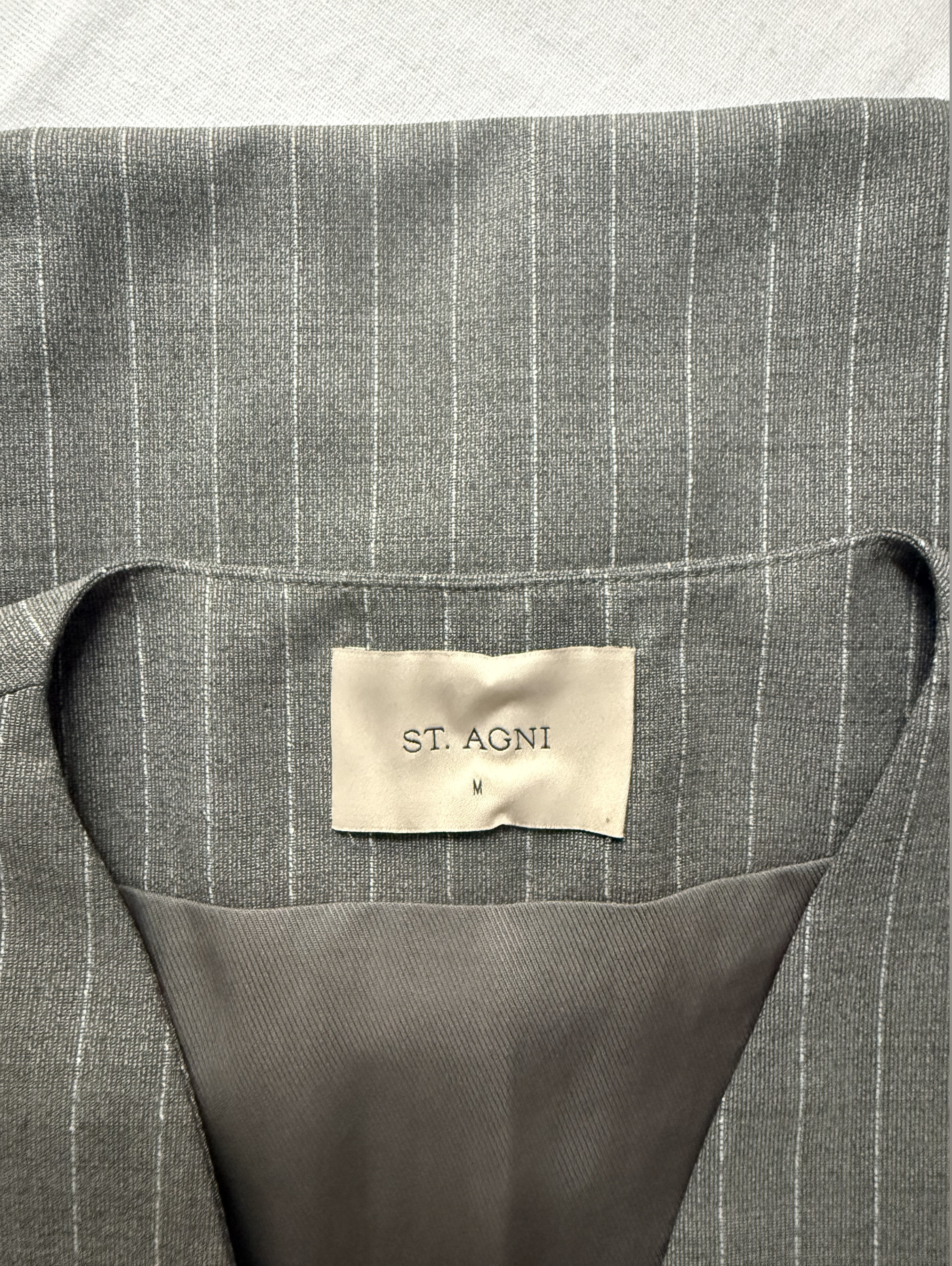 ST. AGNI's takes a less-is-more approach to its designs, resulting in effortless styles that transcend the seasons. This vest is tailored from pinstriped wool blended with 30% recycled fibers and boasts a concealed placket for a seamless finish.