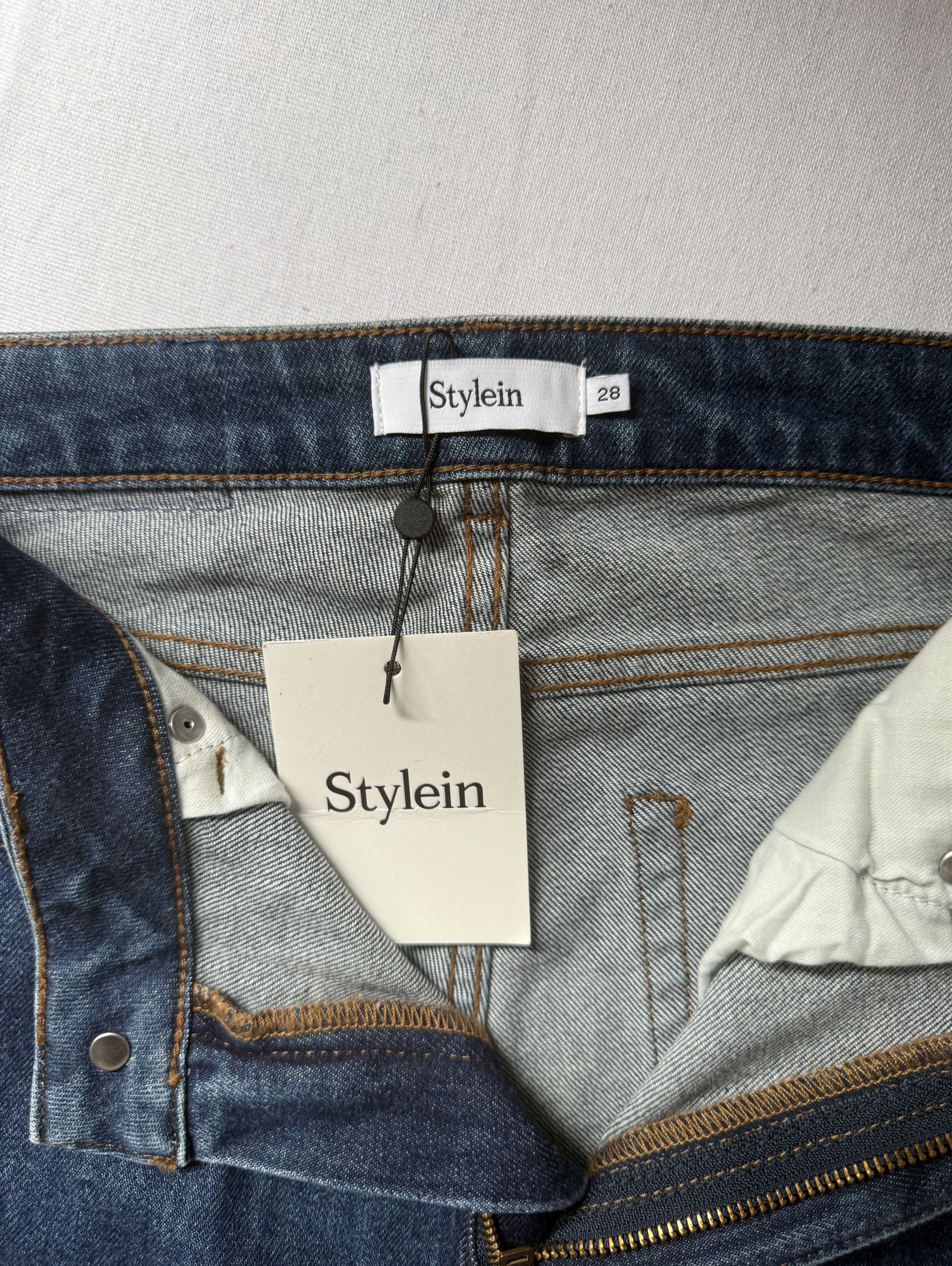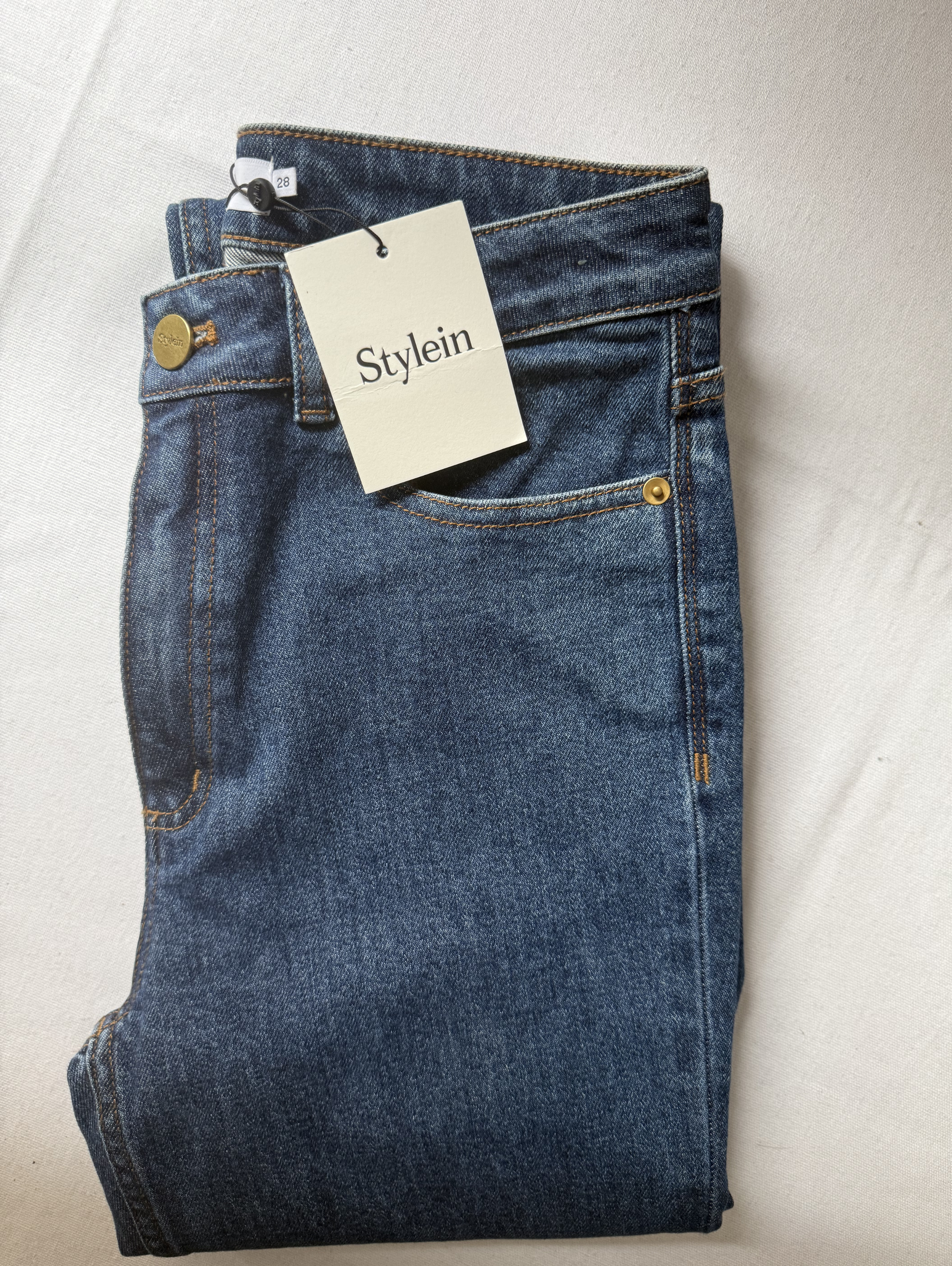 Kaden Denim are full-length, high-waisted jeans, crafted from stretch denim for a perfect fit. Featuring a classic straight cut, they offer the timeless 5-pocket design, a zipper with a zip fly, and a single button closure. Finished with the signature Stylein engraved leather patch at the back.