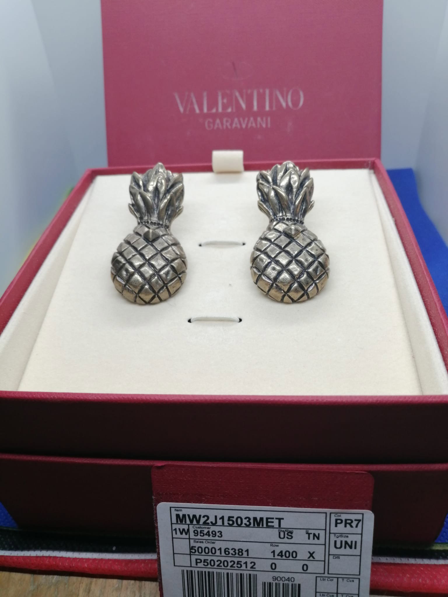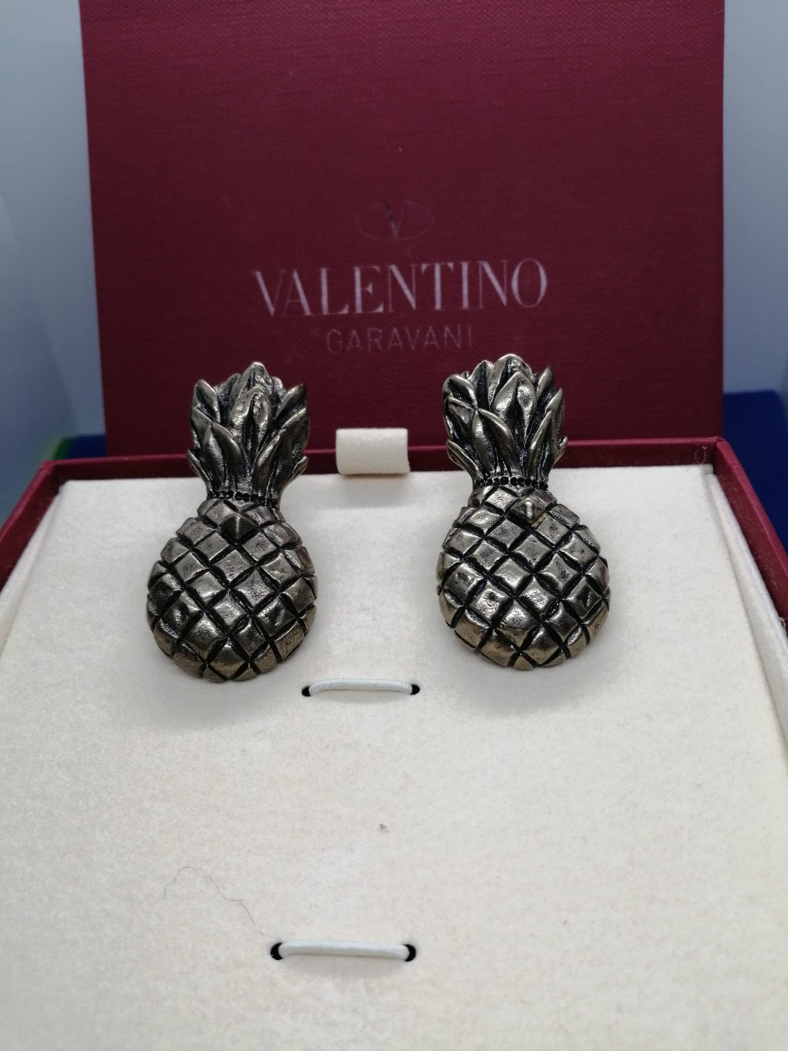 Valentino Garavani Pineapple Clip-on Earrings in gold tone. Original box. Never used