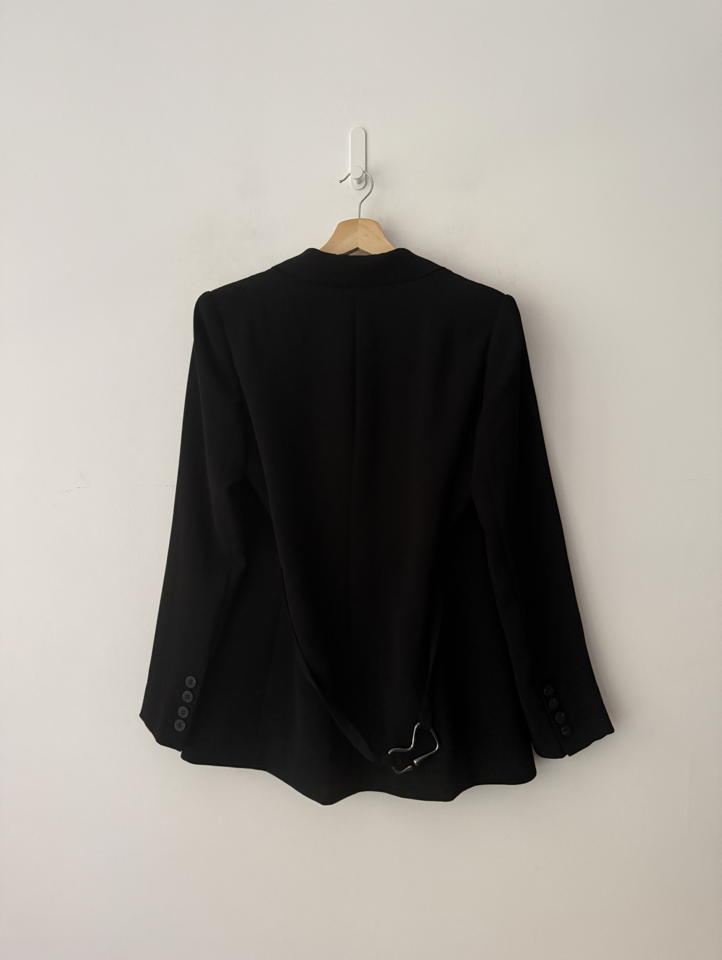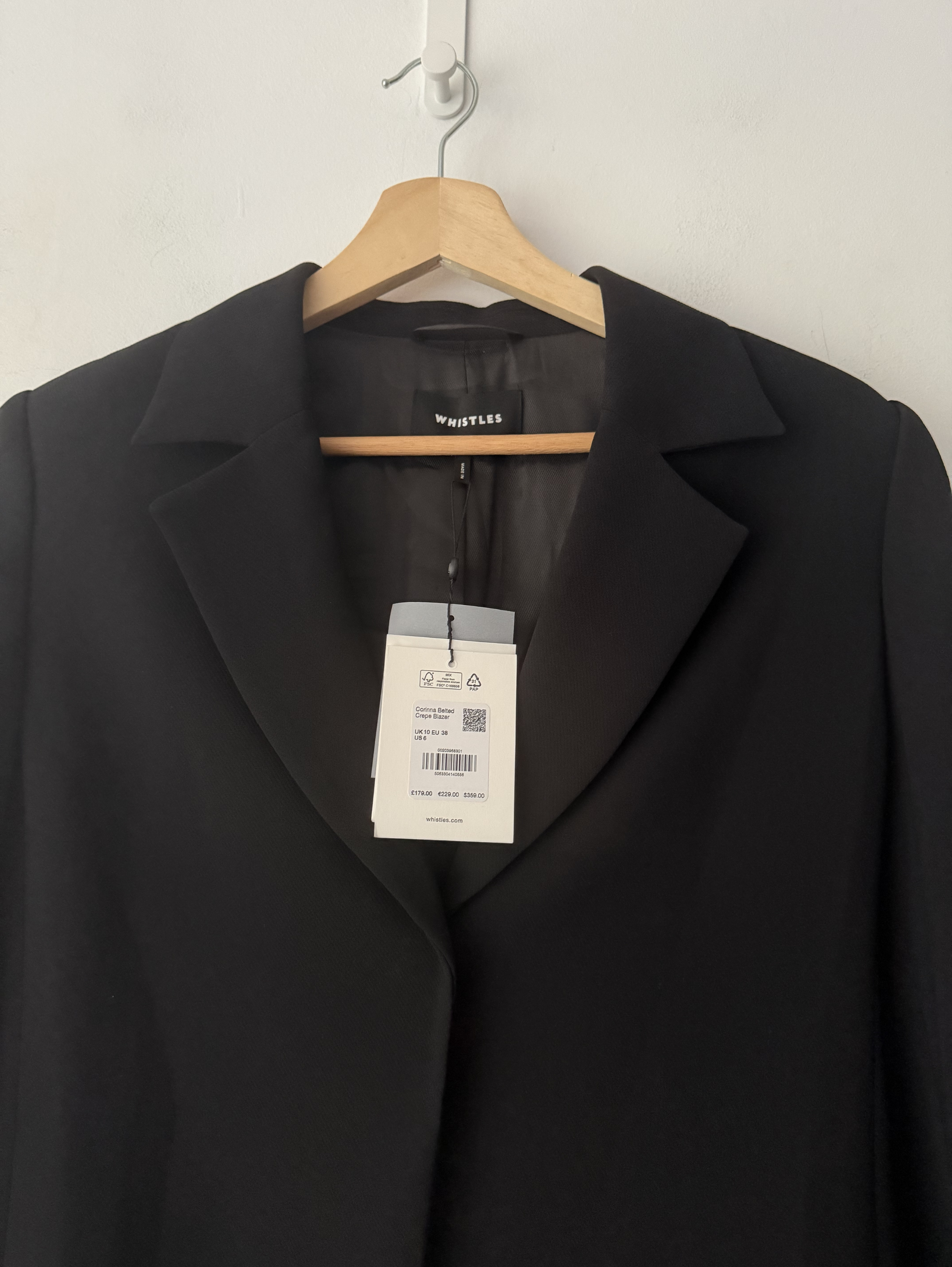 Corinna belted crepe blazer in black with a tailored, structured fit.