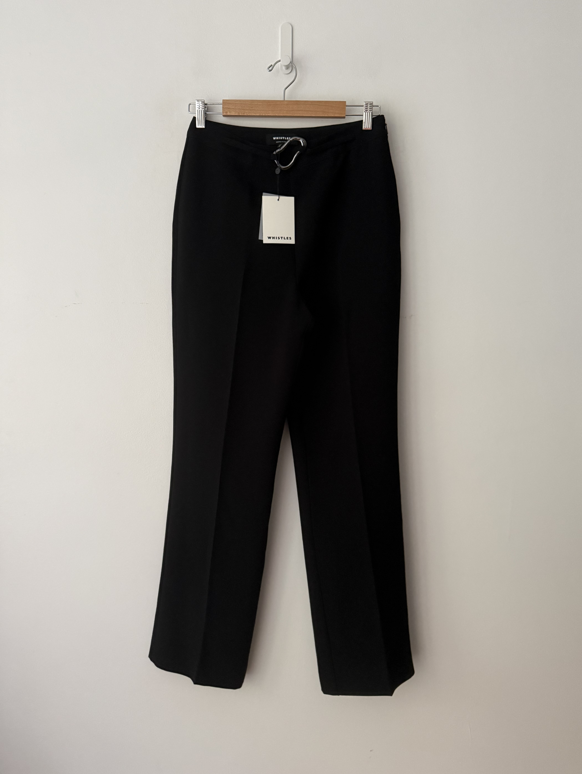 Corinna belted crepe trousers in black with a tailored, structured fit.