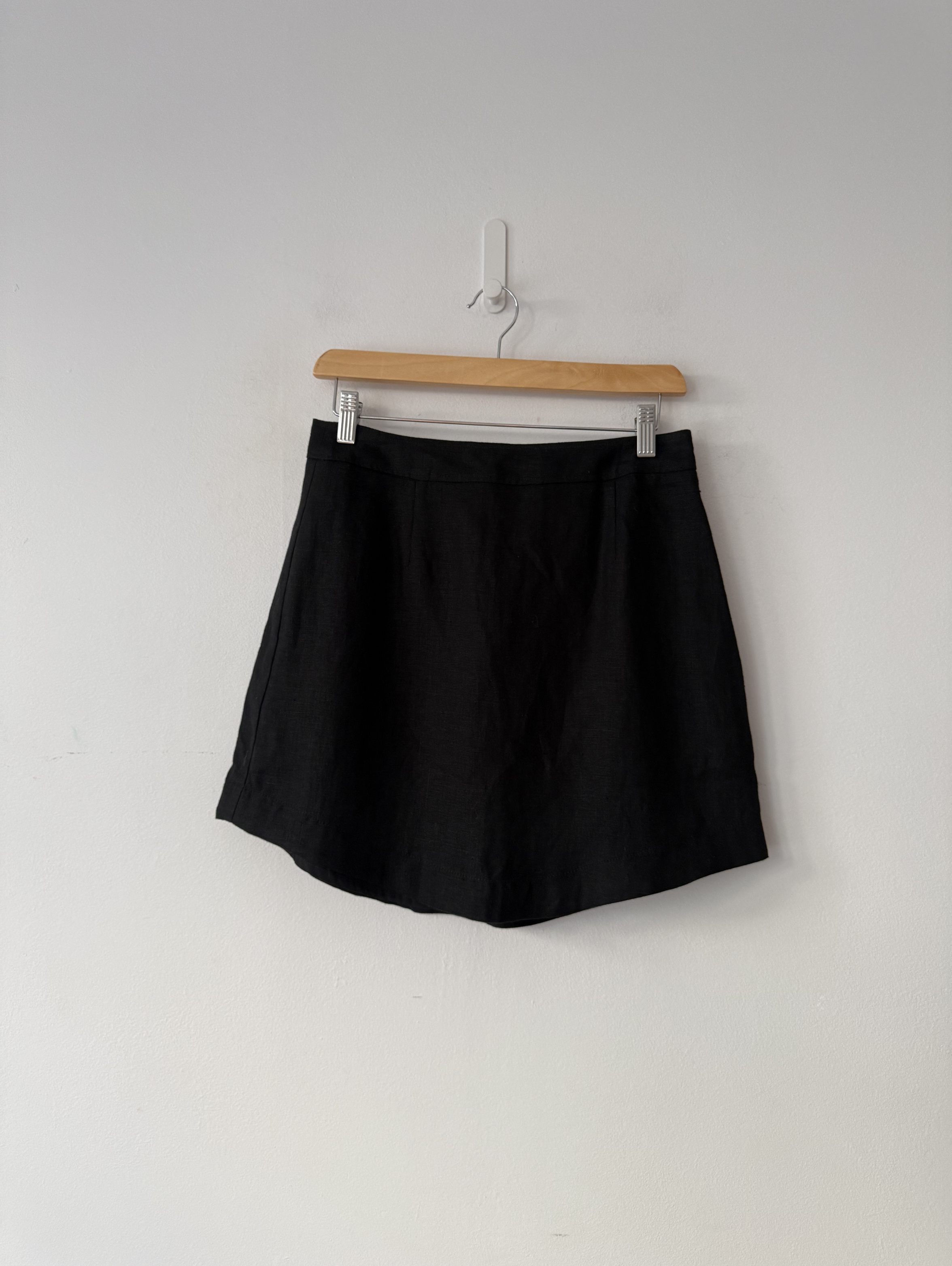 Black Curved Hem skirt made of 100% linen.