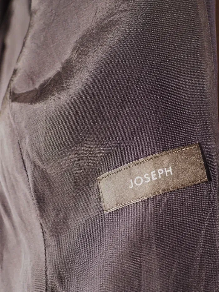 Black, single-breasted blazer in perfect, never worn condition with single covered button. Composition: 45% wool, 55% polyester. Dry clean only.